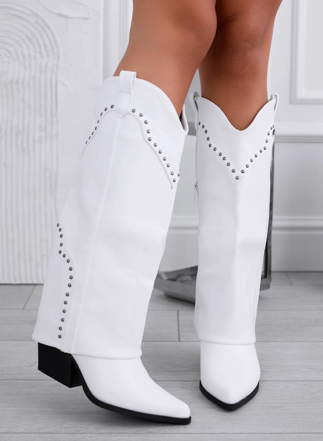 ABIGAIL – Stivali Bianchi Camperos Con Borchie