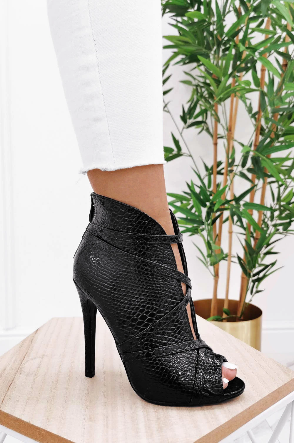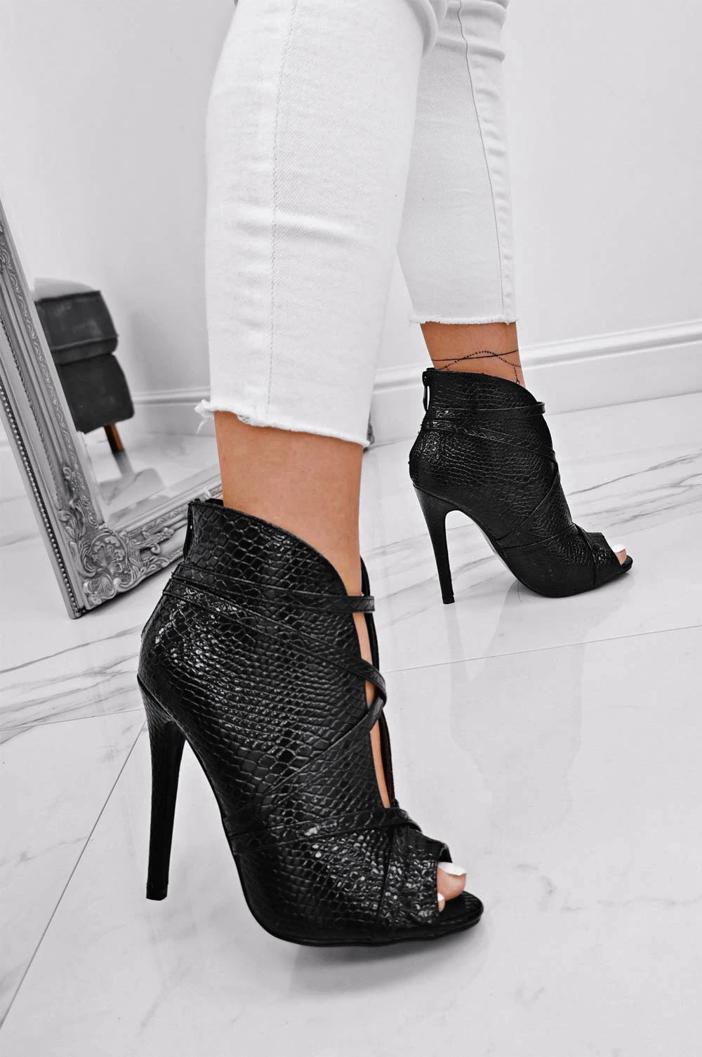 Alexoo Sandali Tronchetti Neri Spuntati Effetto Pitonato E Tacco Alto