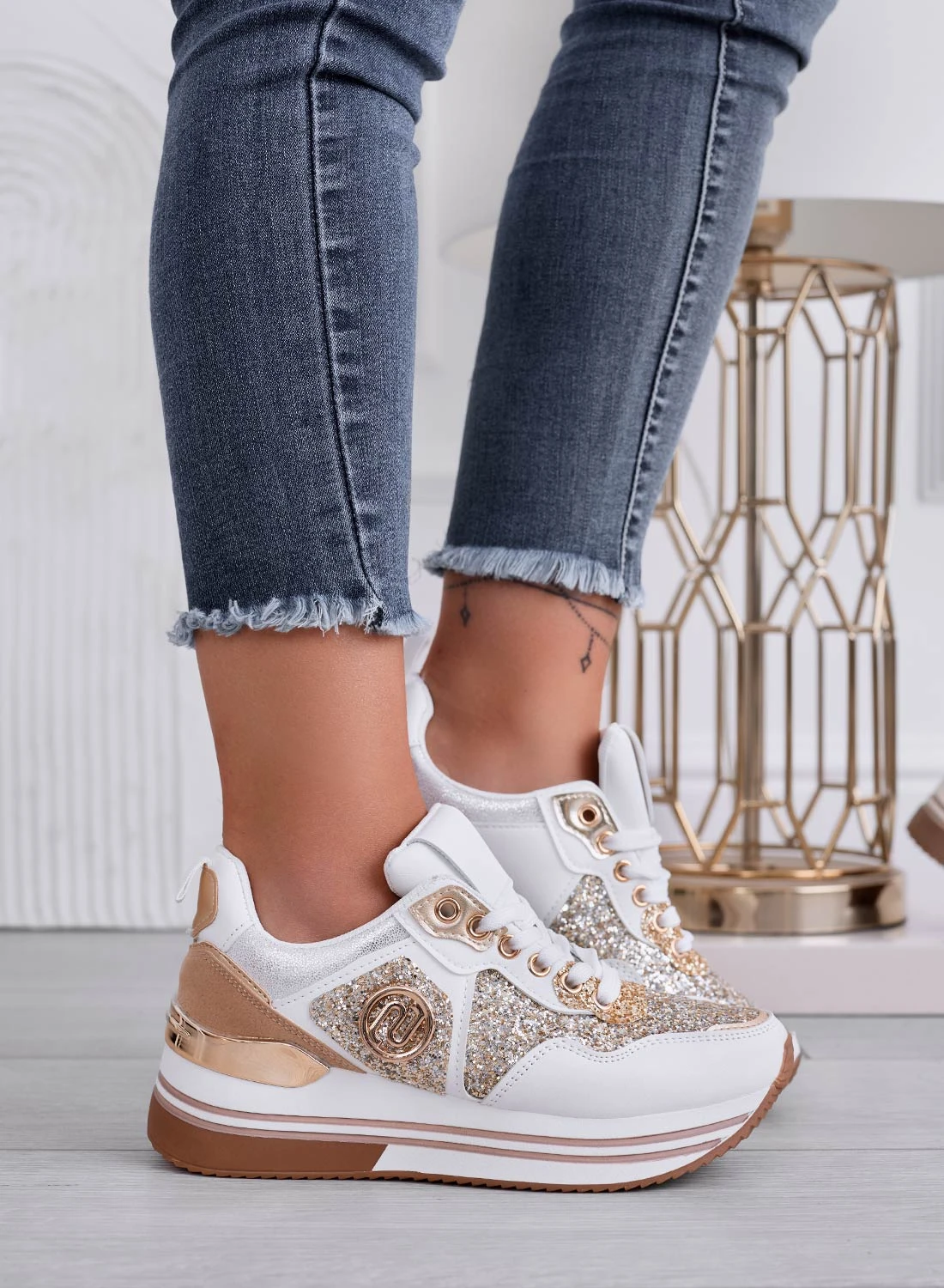ALISHA – Sneakers Bianche Con Inserti Glitter Oro