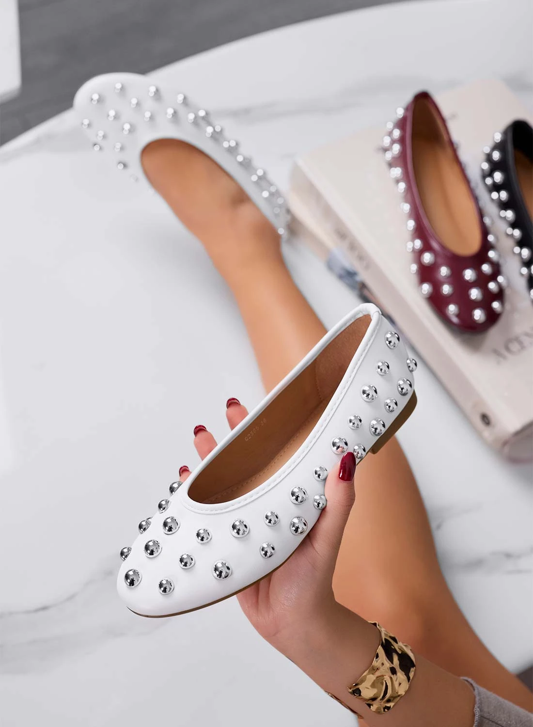 ALLEN – Ballerine Bianche Con Borchie A Sfera Argento