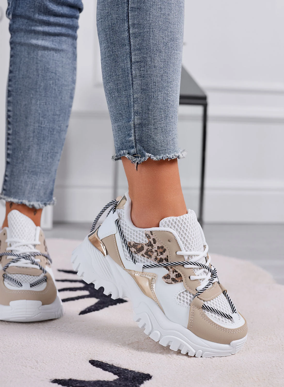 Porta il tuo stile a un altro livello con queste sneakers chunky, perfette per un look casual ma d’impatto. Il mix di materiali, tra denim, mesh traspirante e dettagli animalier, dona un tocco unico e dinamico. La suola spessa garantisce comfort e un effetto slanciato, ideale per outfit sportivi o streetwear. Perfette da abbinare a jeans skinny e t-shirt oversize per un look urbano, o a pantaloni cargo e crop top per un’ispirazione più streetstyle. Indossale per il tempo libero, le passeggiate in città o per dare carattere ai tuoi outfit quotidiani!