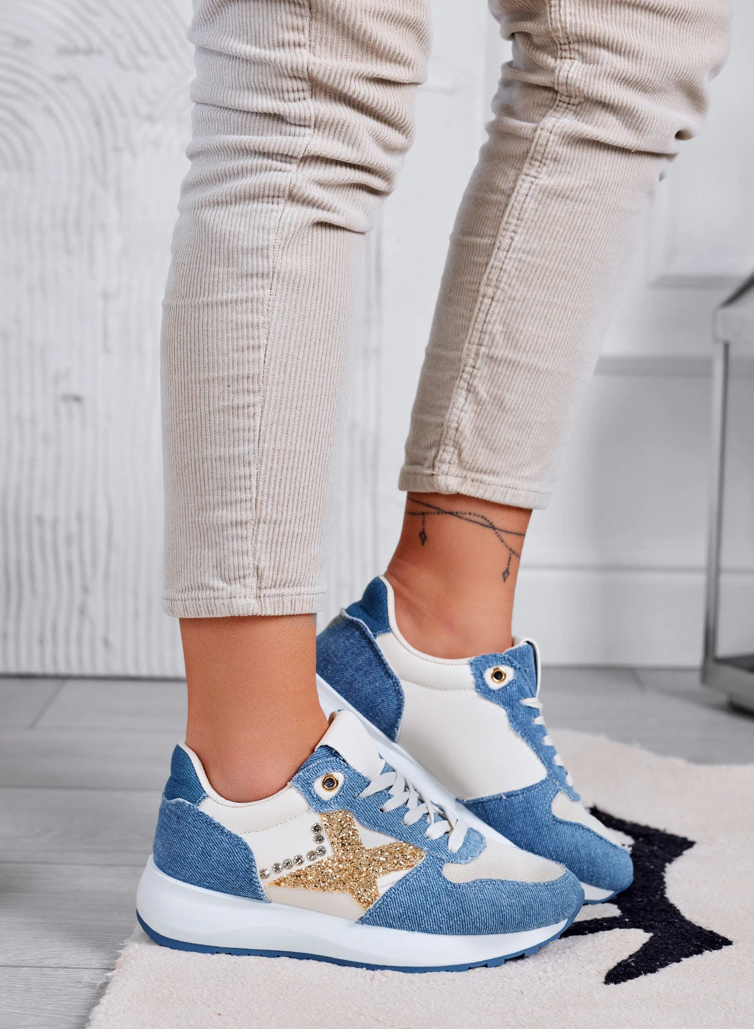 ARISA – Sneakers Blu Jeans Con Glitter Oro E Strass