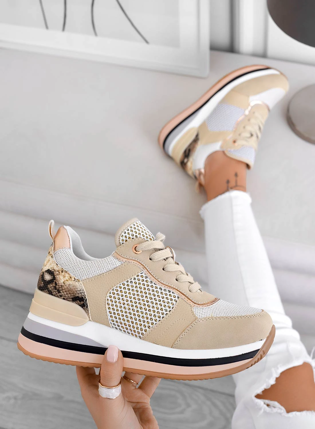 BALDWIN – Sneakers Platform Beige Con Inserti Pitonati