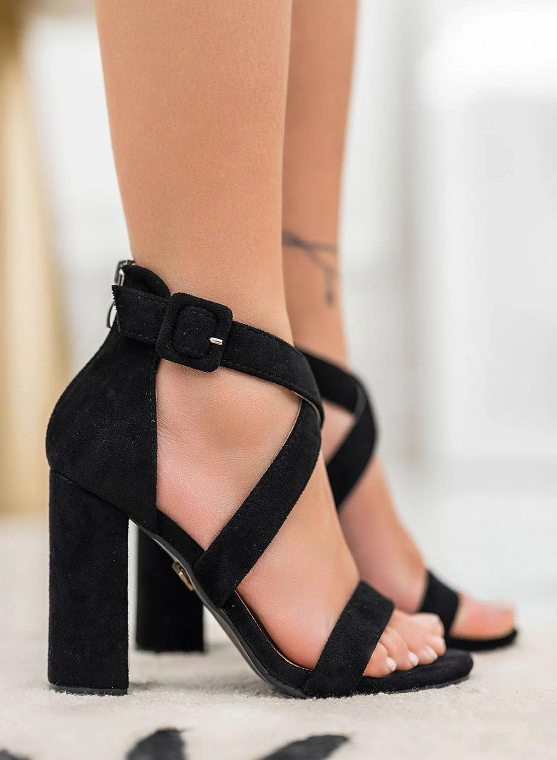 BLAIR – Sandali Neri Scamosciati Alexoo Fasciati Con Tacco Comodo