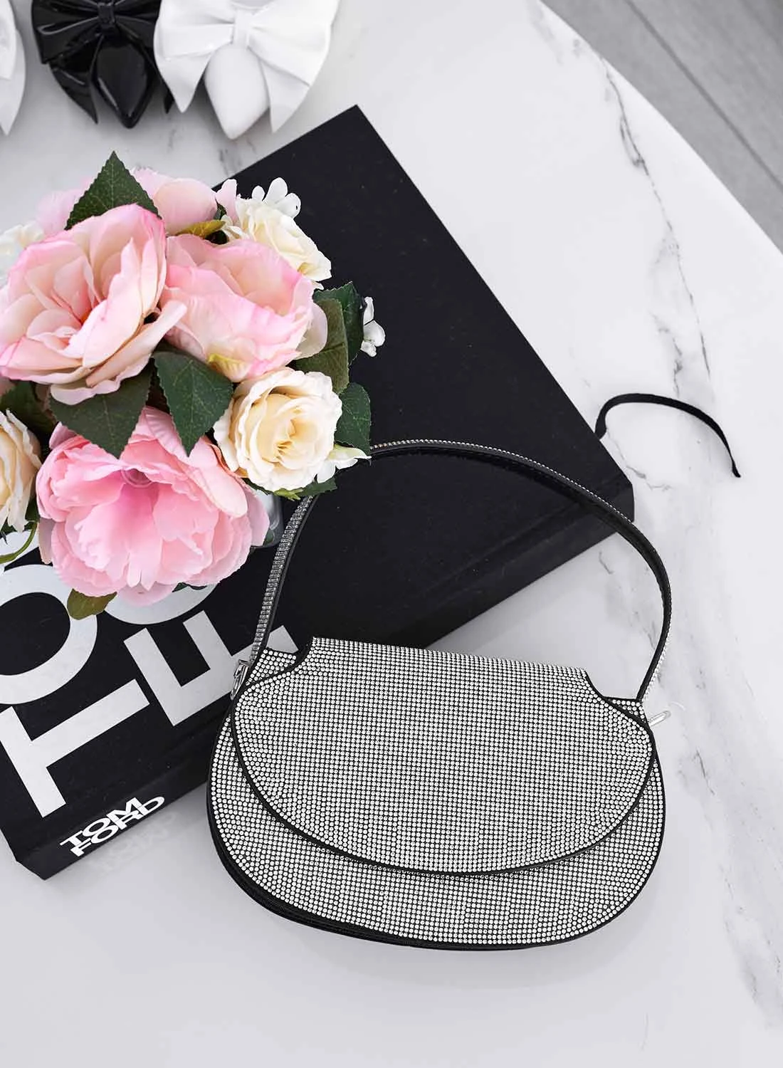 Borsa Nera Con Strass E Catena B233