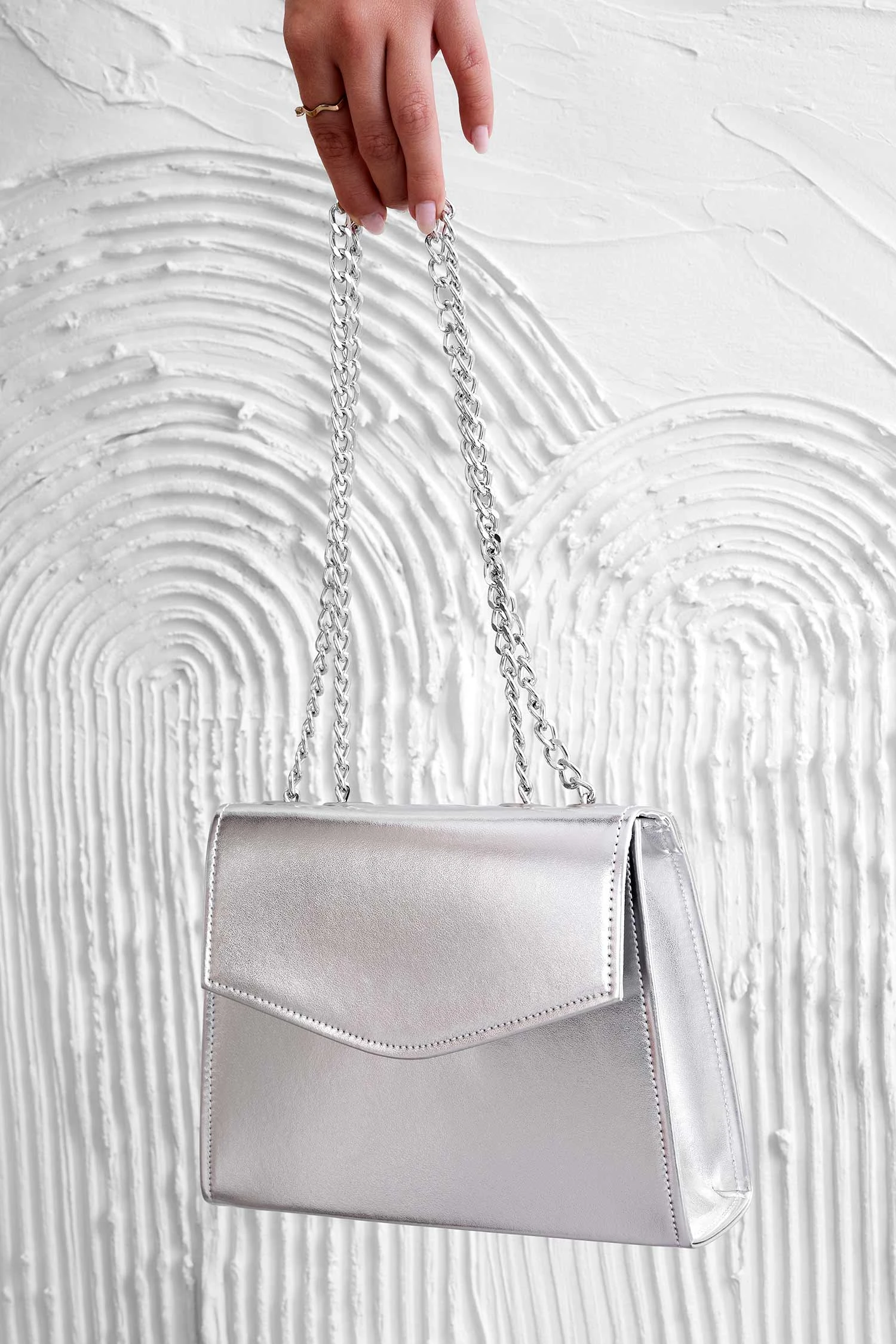 Borsa Pochette Argento Metallizzata B217 Con Catena