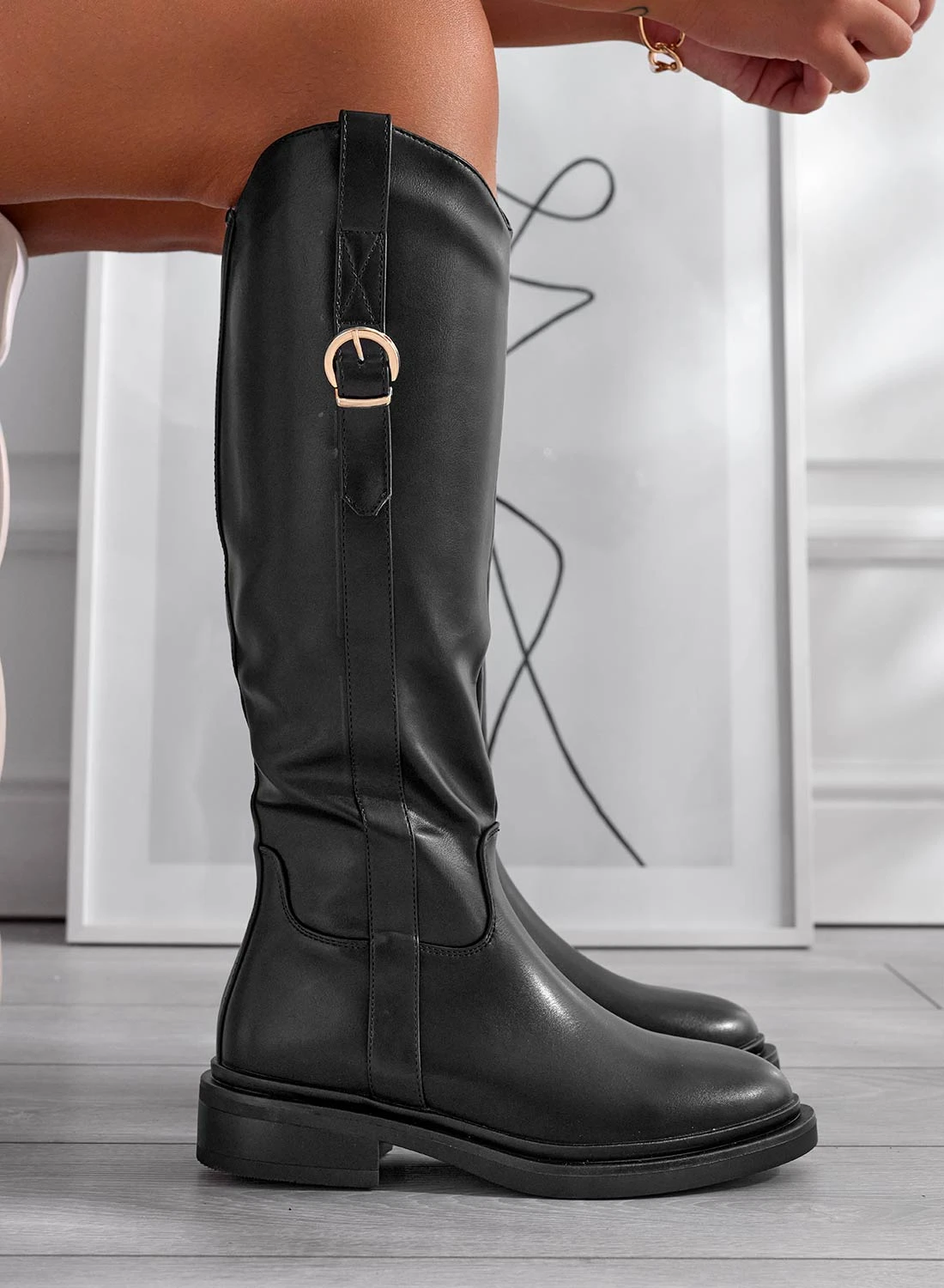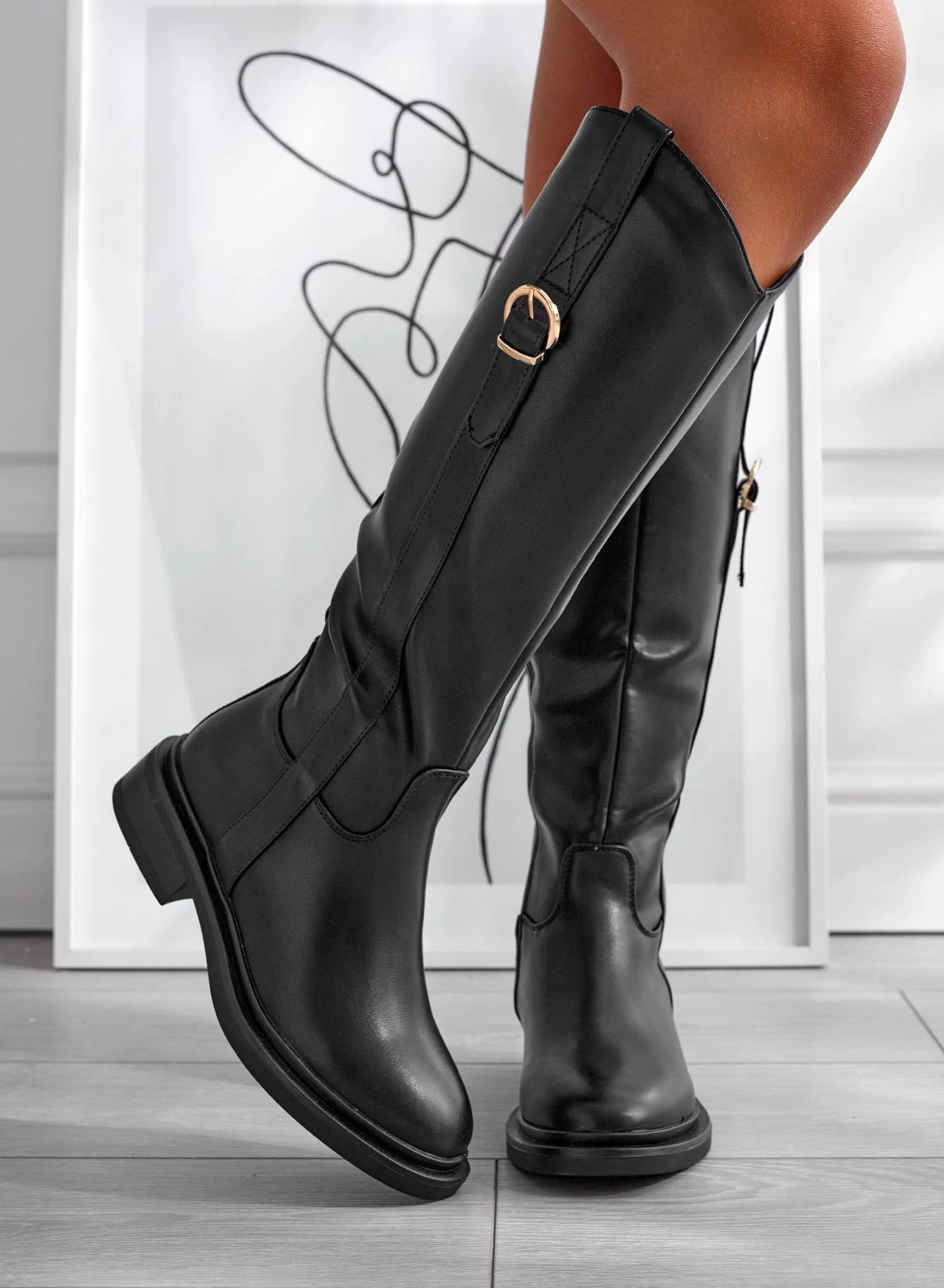 BRIANNA – Stivali Neri Con Fibbia Oro Laterale