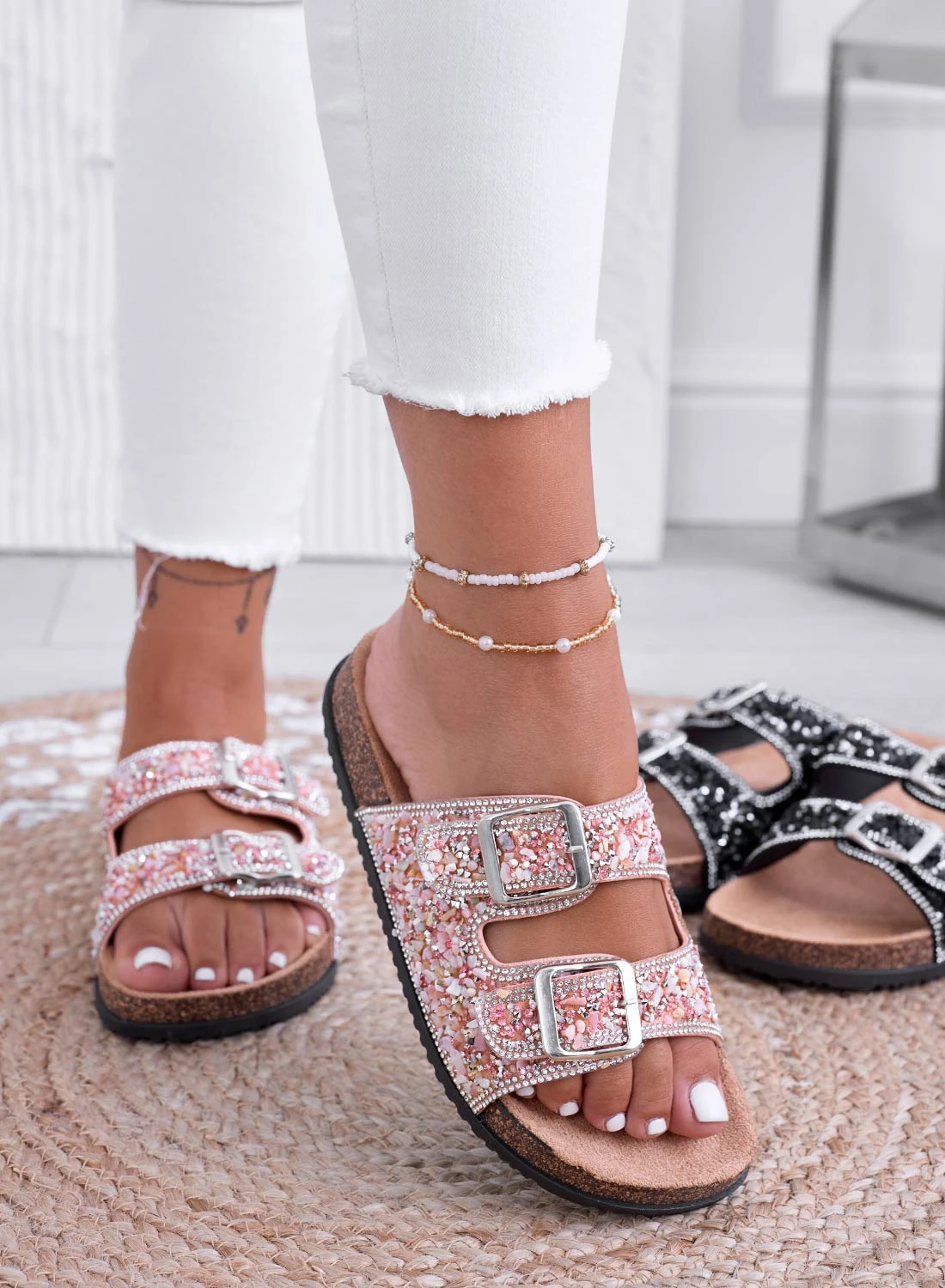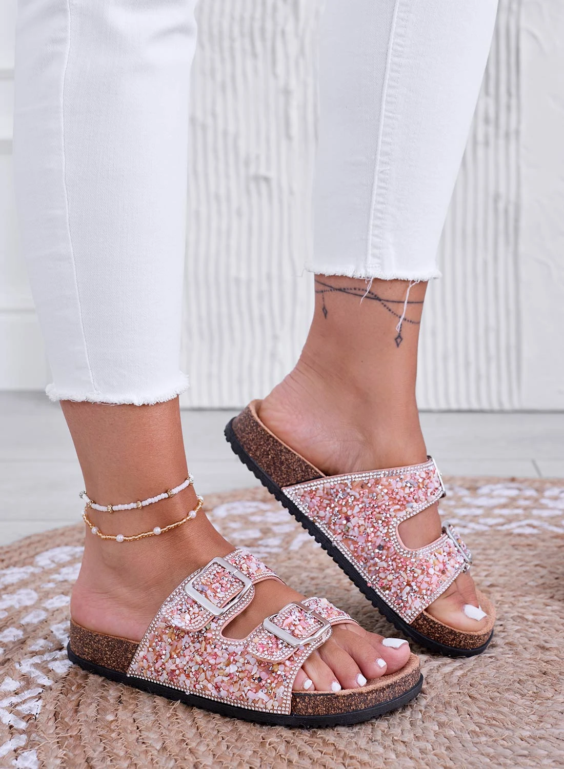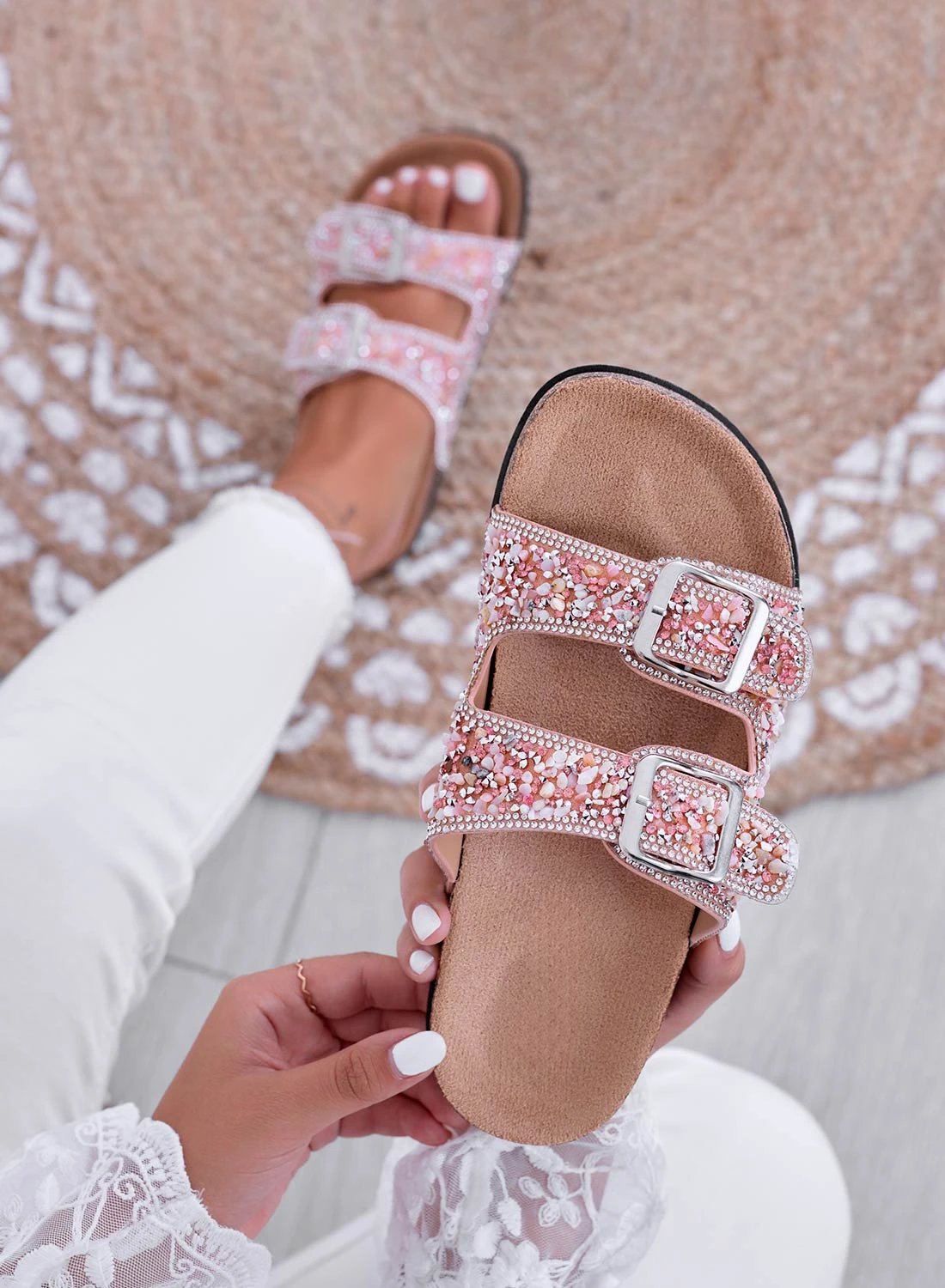 BROOKE – Sandali Ciabatte Rosa Gioiello Con Fibbie E Strass