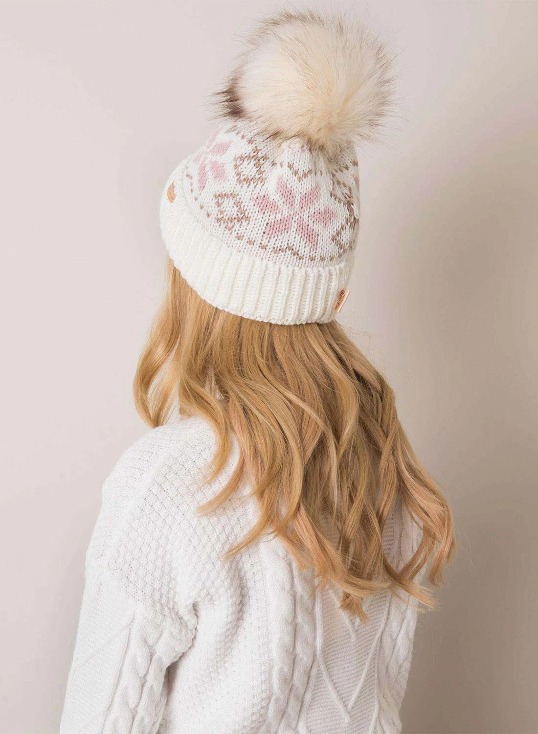 Cappello Beige Bicolore Imbottito Con Ponpom In Ecopelliccia