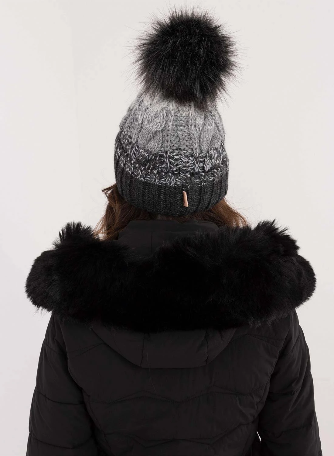Cappello Grigio Con Imbottitura Interna E Pompon