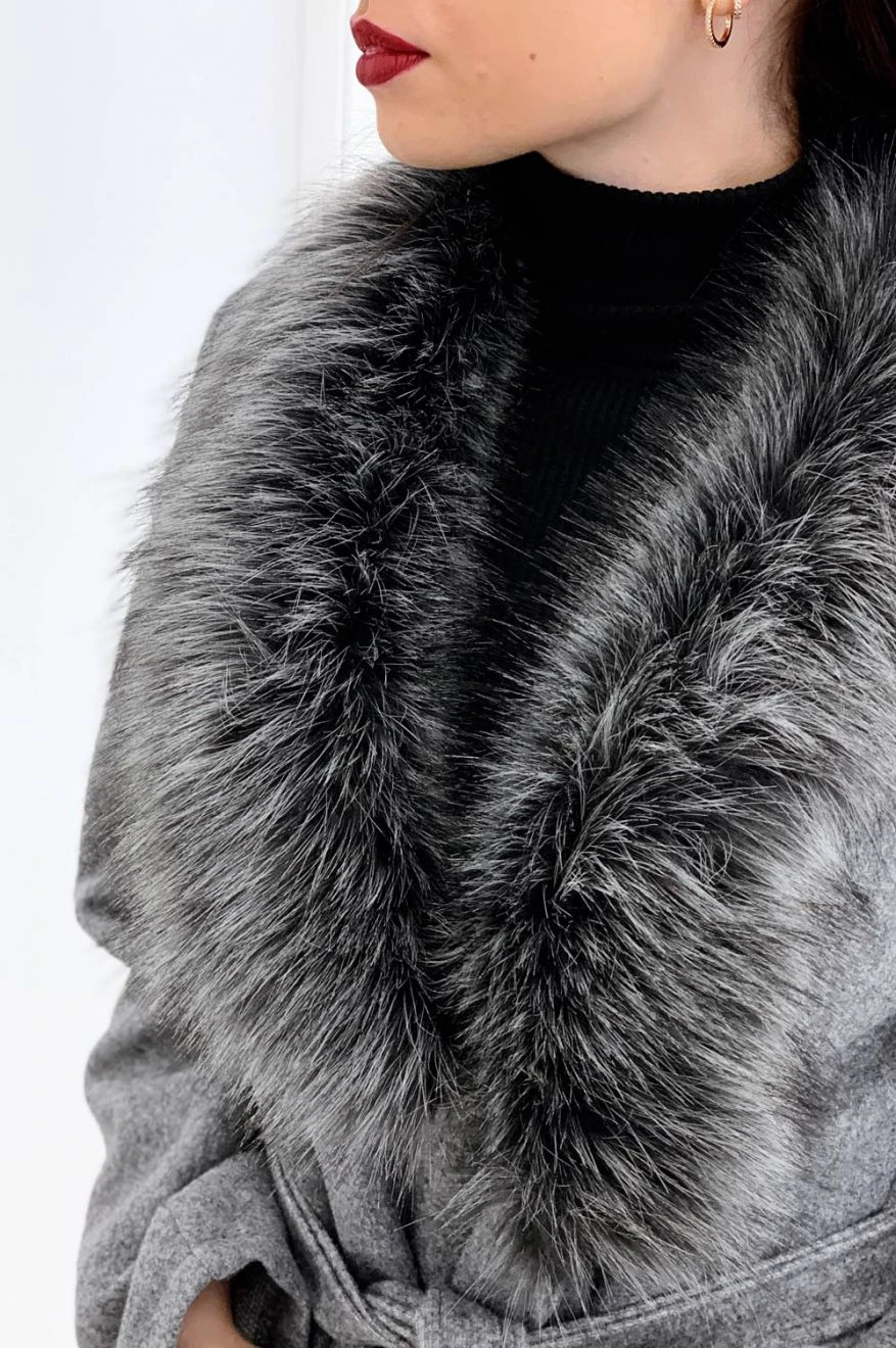 Cappotto Con Laccio In Vita E Collo In Ecopelleccia Grigio