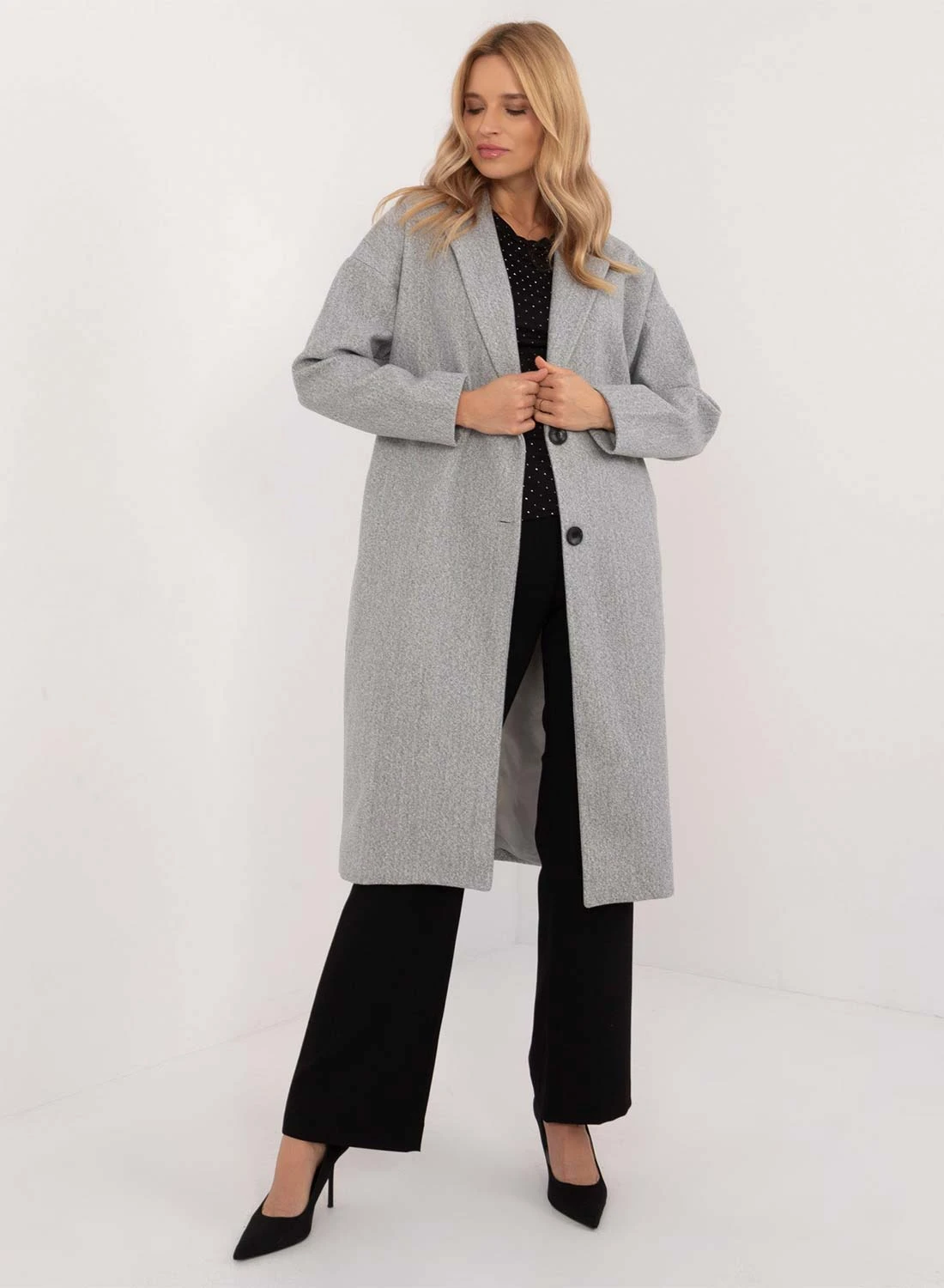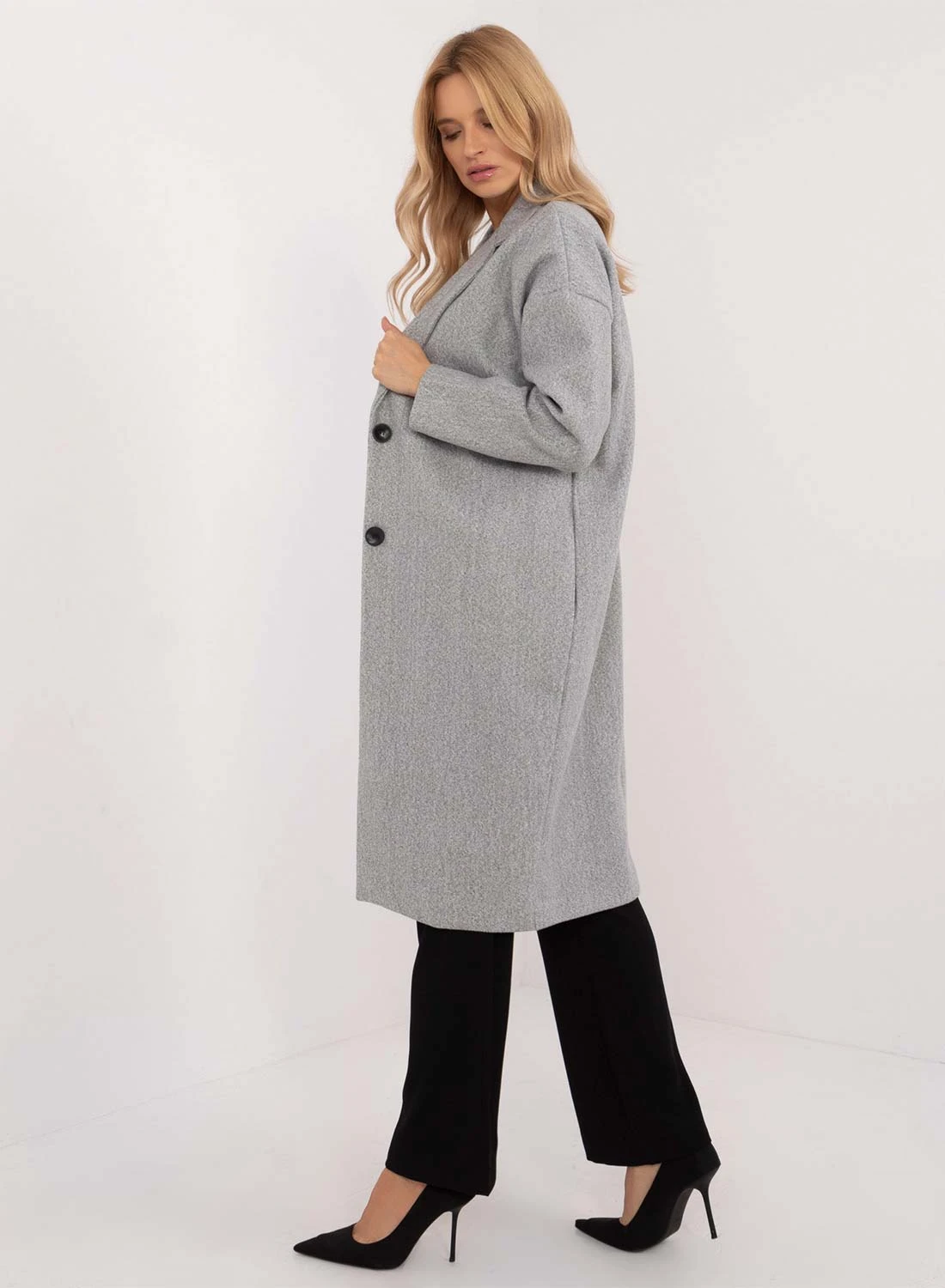 Cappotto Lungo Elegante Grigio Con Bottoni