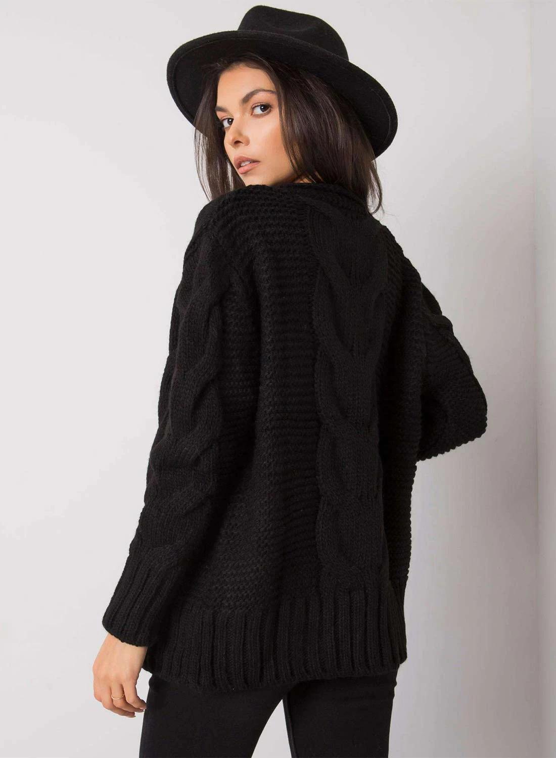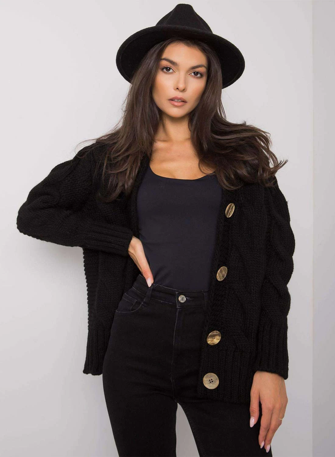 Cardigan Nero In Maglia Con Bottoni