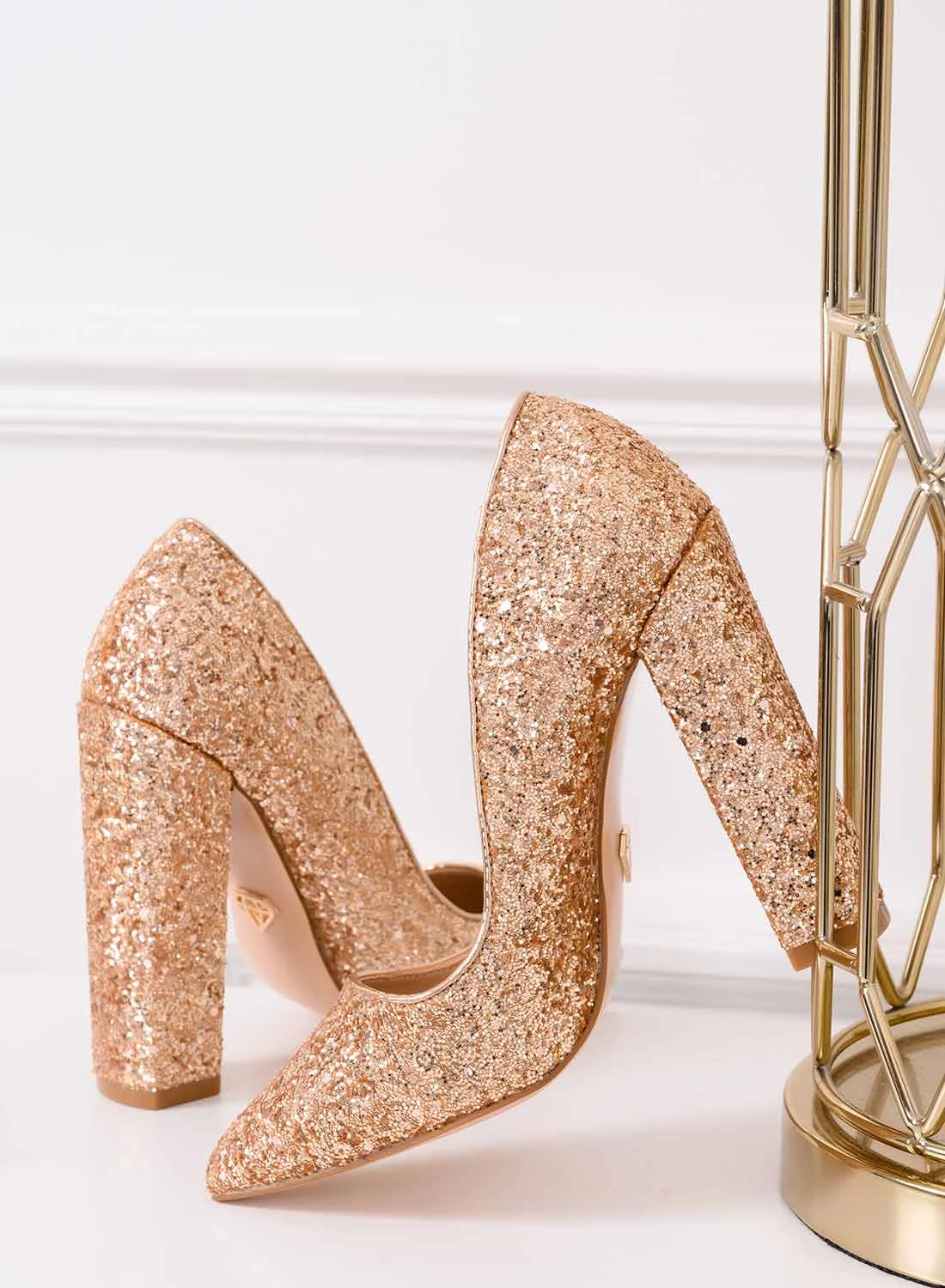 CAROLA – Decolletè Oro Rosa Glitter Con Tacco Comodo