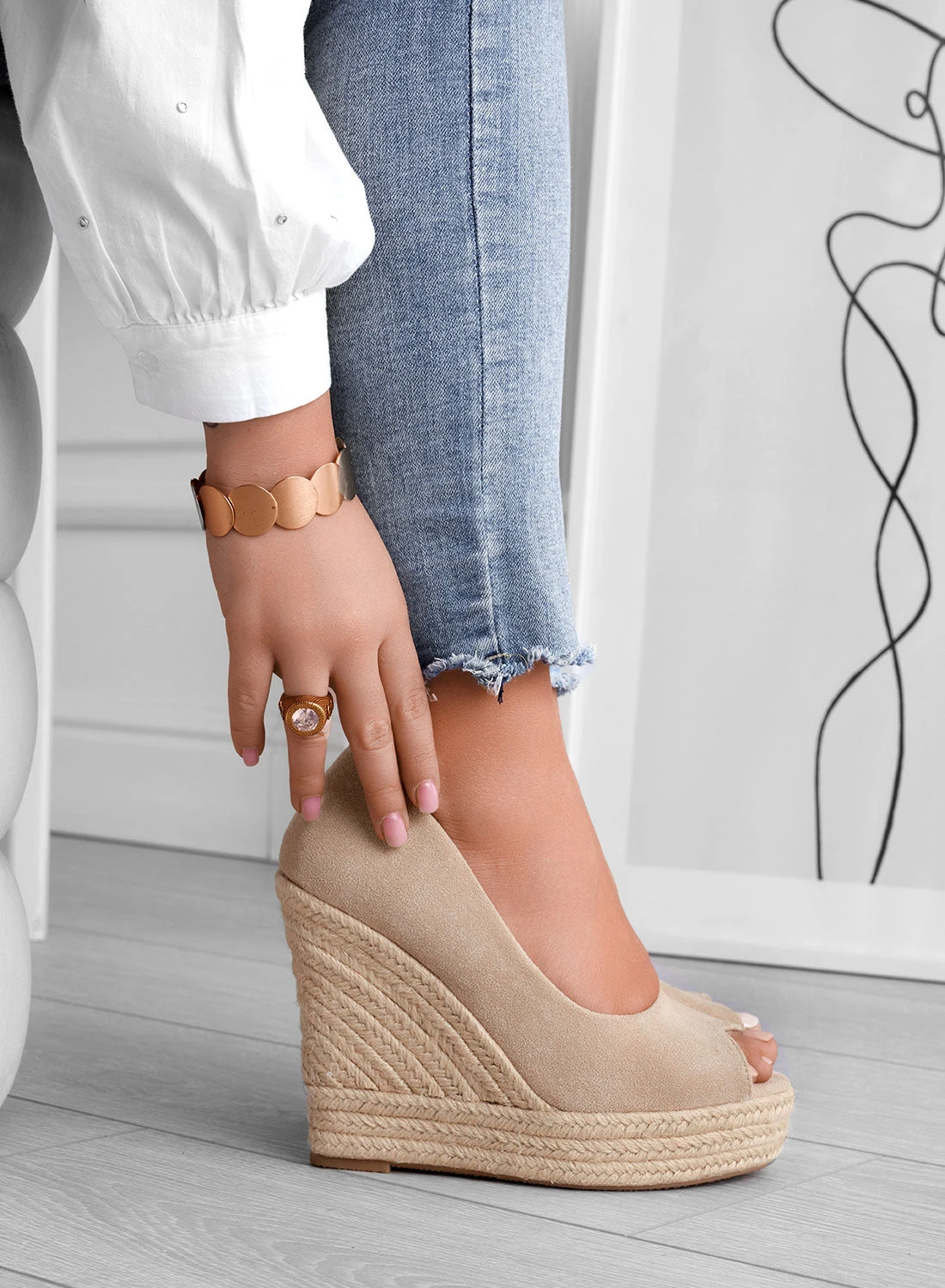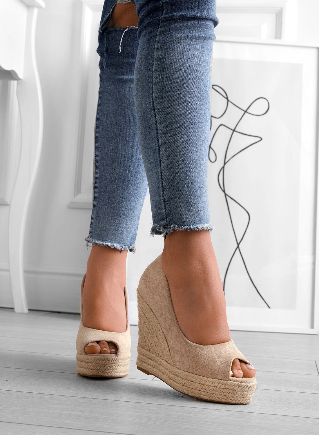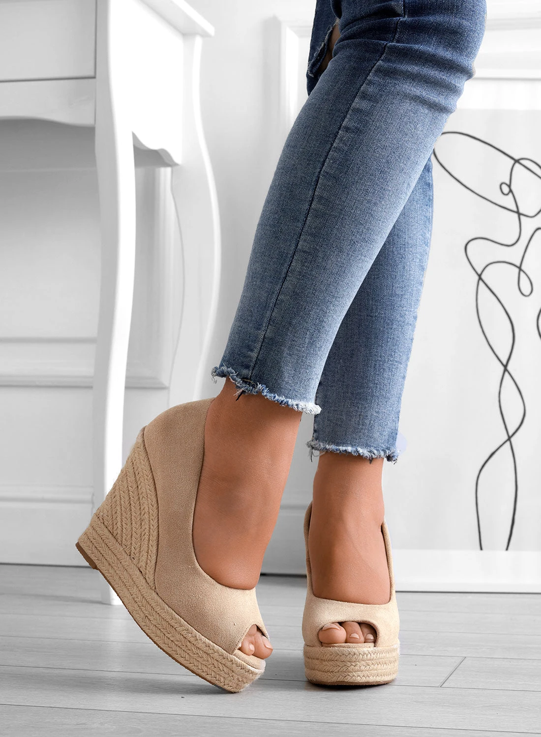 CLEO – Espadrillas Alexoo Beige Scamosciate Con Zeppa