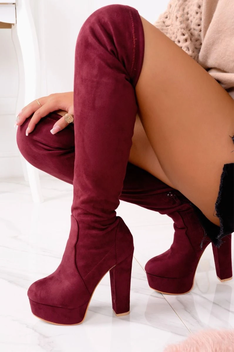 CLORIS – Stivali Bordeaux Scamosciati Alla Coscia