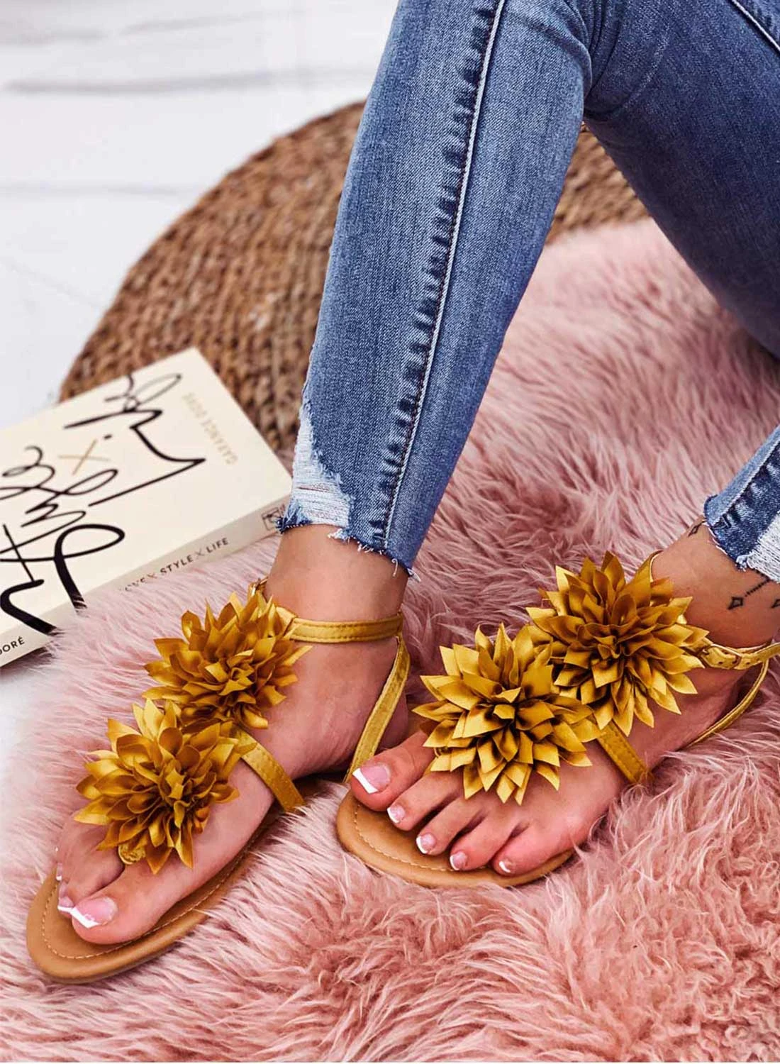 CONNIE – Sandali Infradito Gialli In Raso Con Fiore Applicato