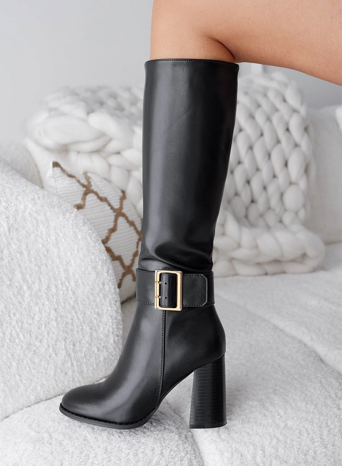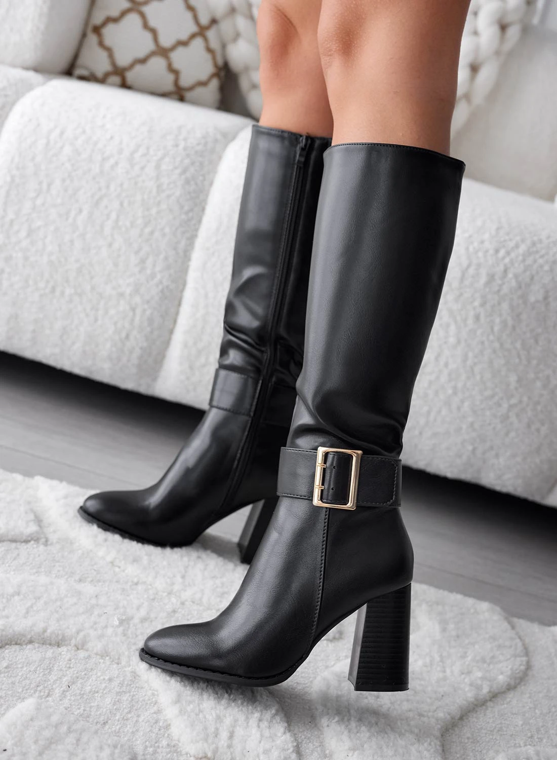CORE – Stivali Neri Al Polpaccio Con Tacco E Fibbia