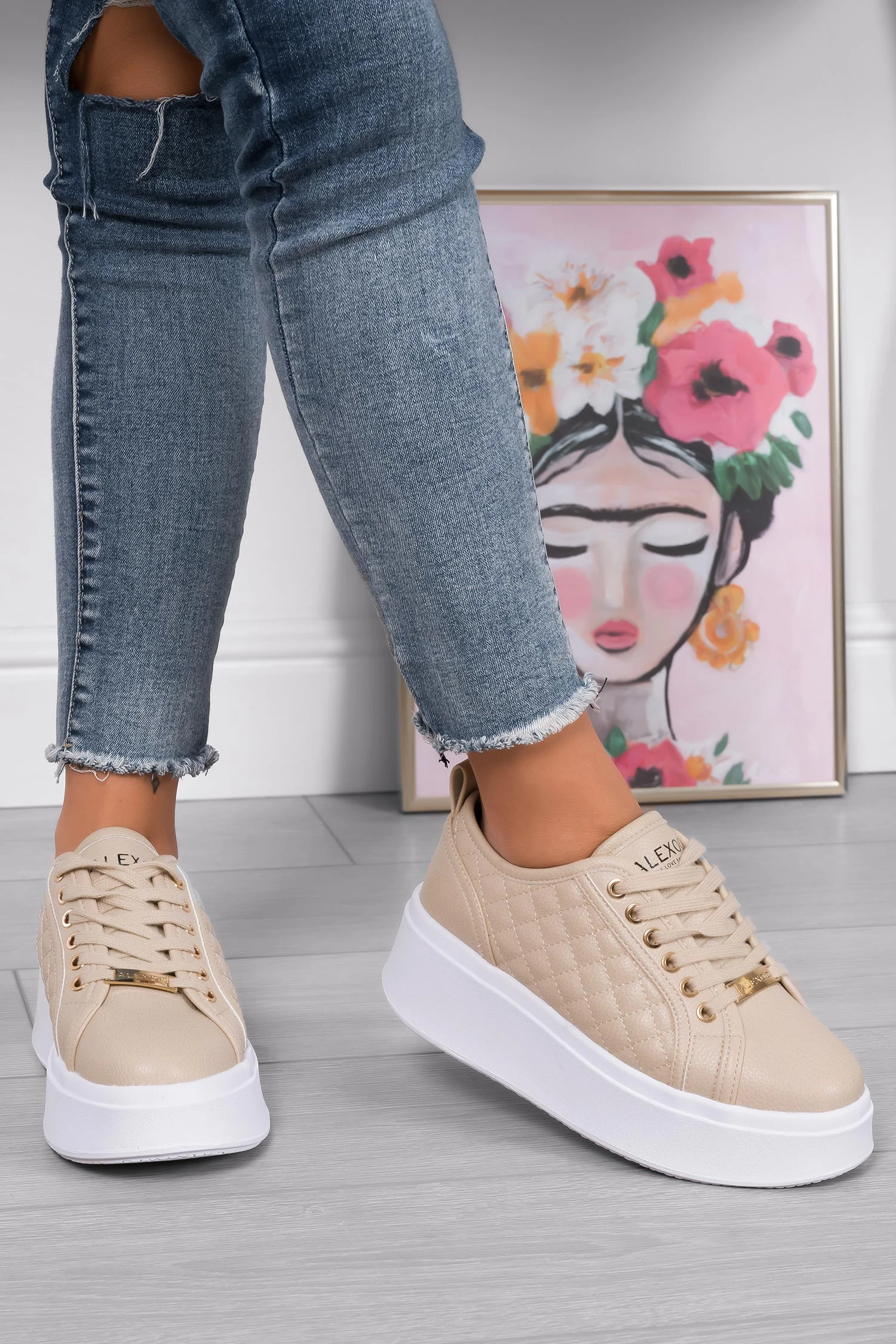 DALILA – Sneakers Platform Alexoo Con Suola Alta Trapuntate Beige