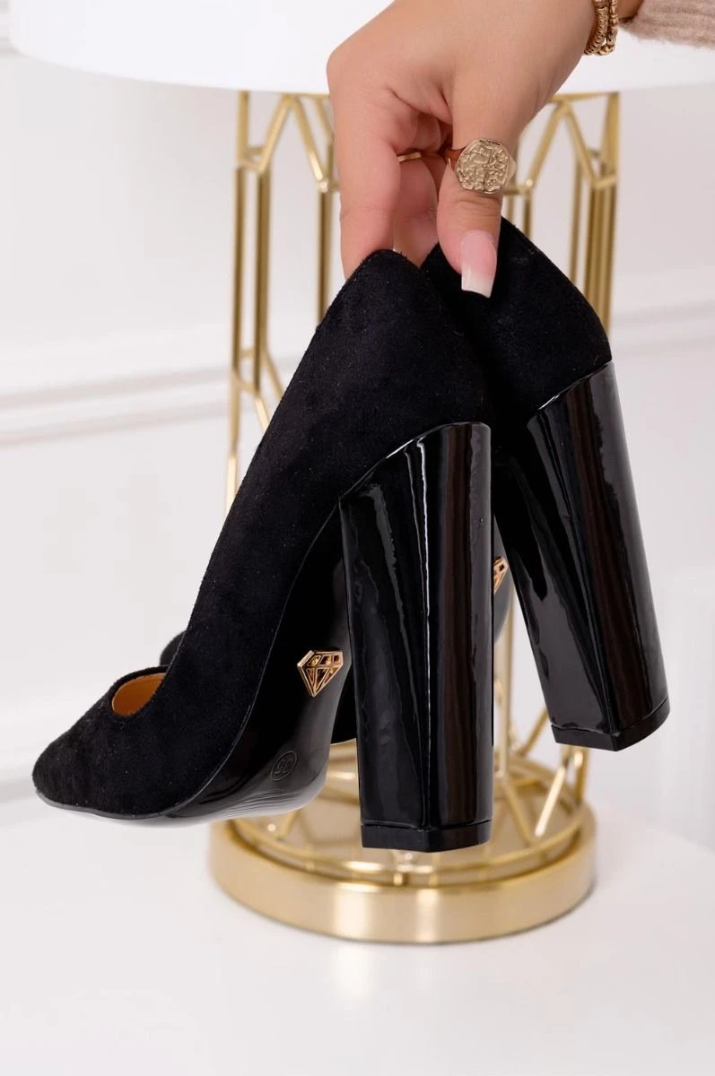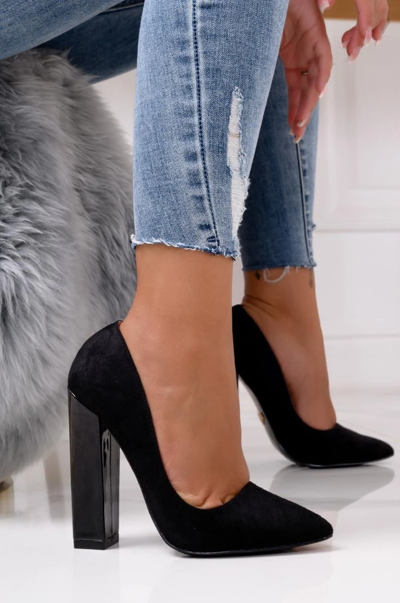 Decolletè Nere Scamosciate Con Tacco Comodo Vernice