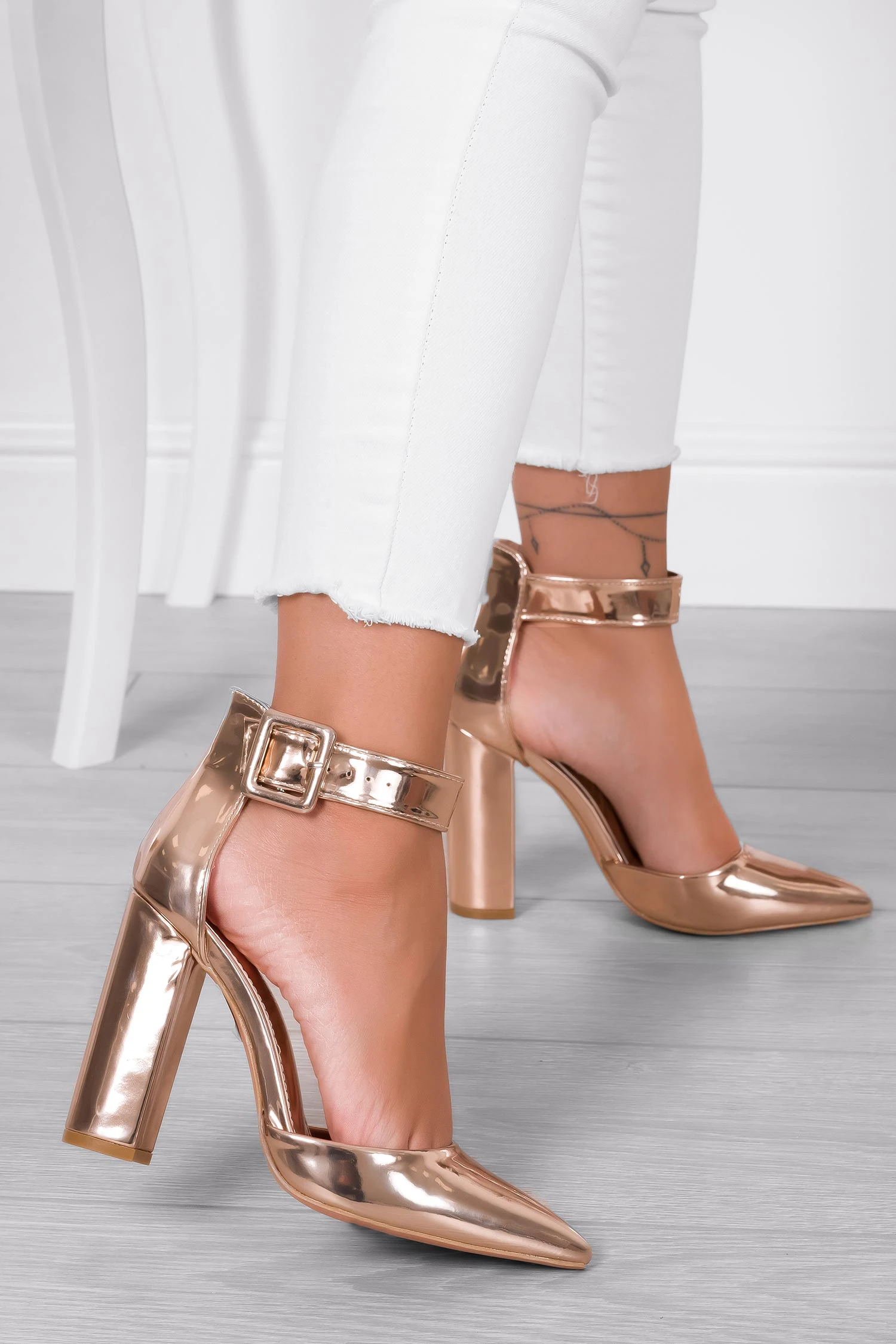 Decolletè Oro Rosa In Vernice Con Cinturino E Tacco Comodo