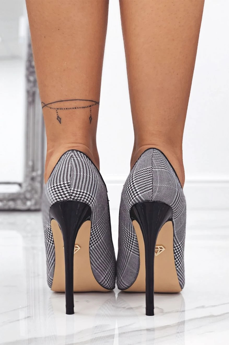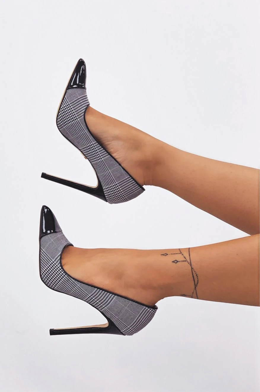 Decolletè Pied De Poule Misto Quadri Con Punta E Tacco A Contrasto