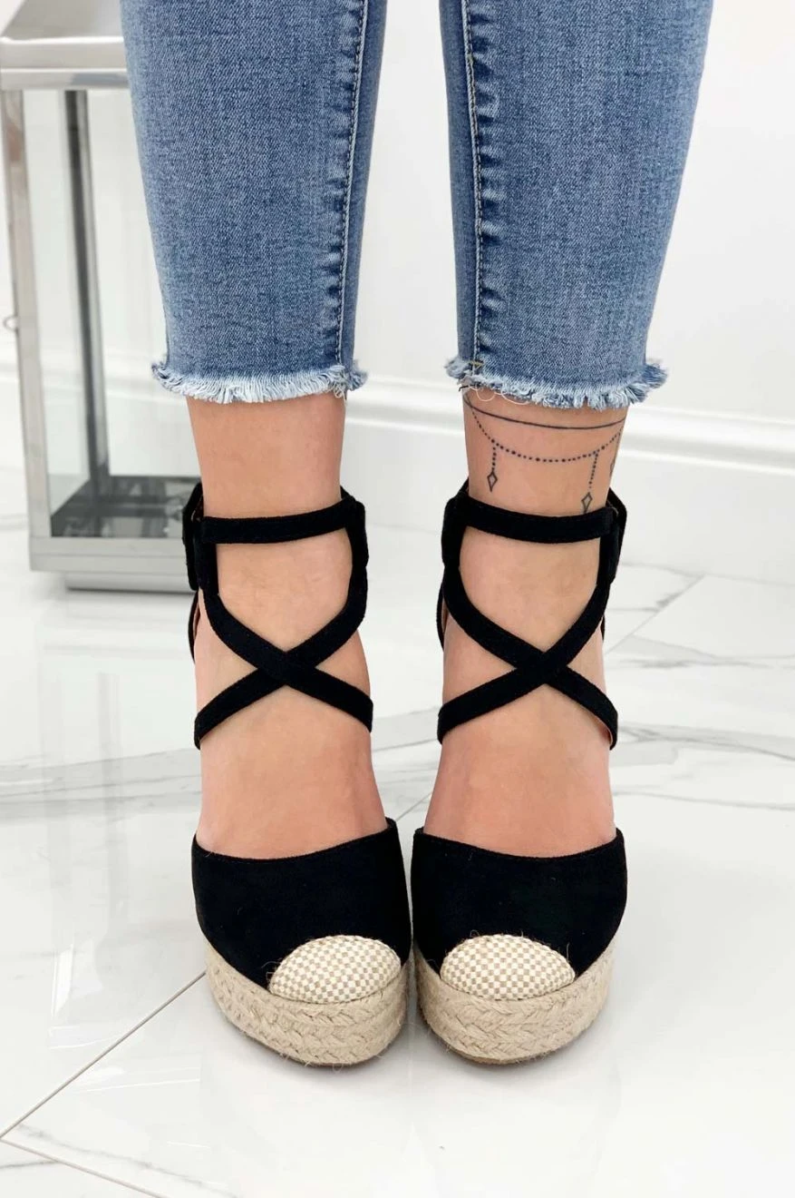 Espadrilles Nere Con Zeppa E Fasce Ad Incrocio