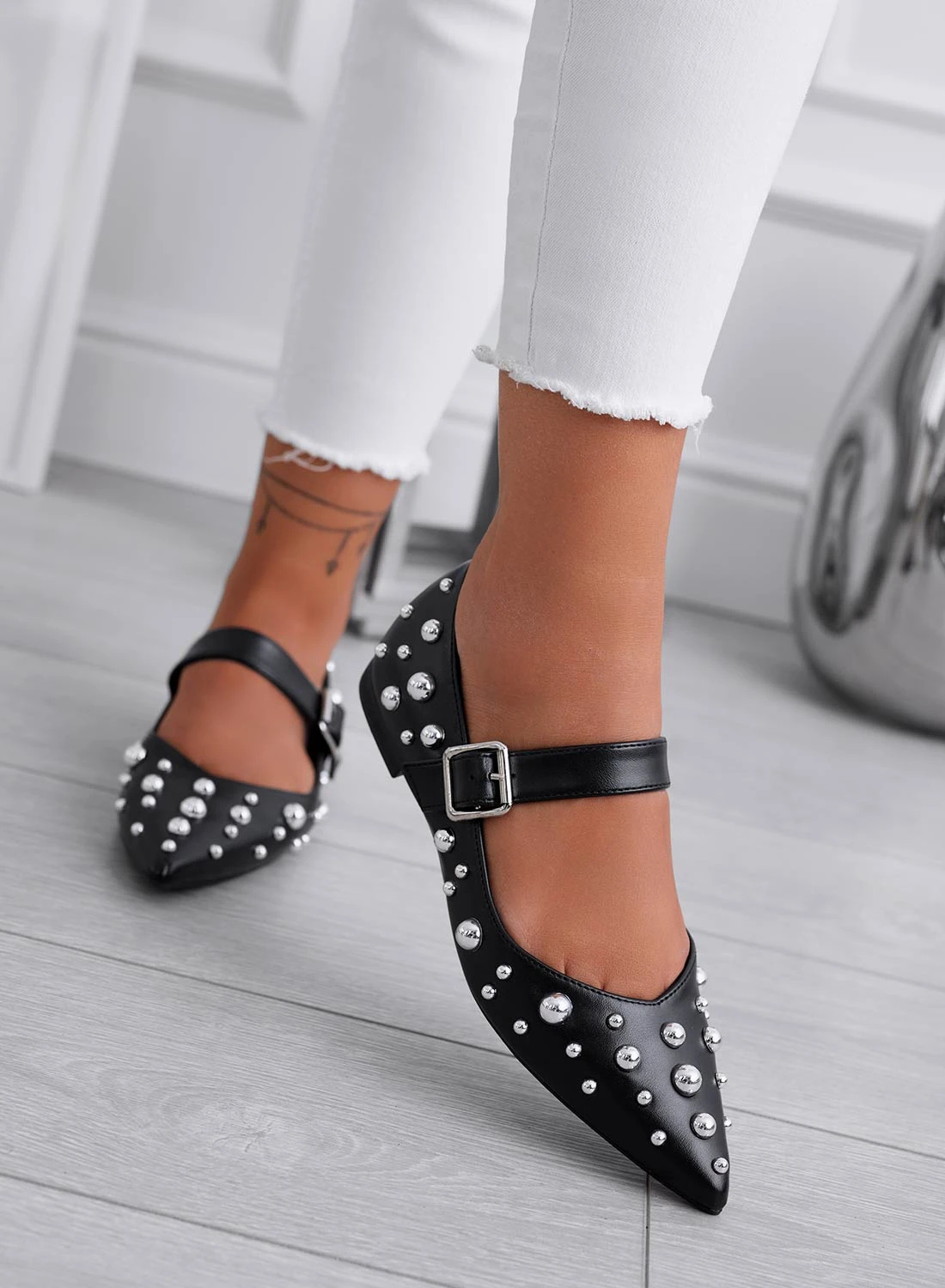Recensisci per primo “FRANCA – Ballerine Nere A Punta Con Borchie A Sfera Argento” Annulla risposta