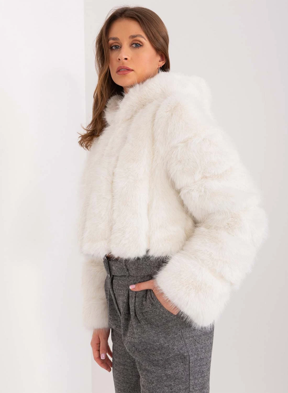 Giacca Corta In Ecopelliccia Con Cappuccio A Pelo Lungo Bianca