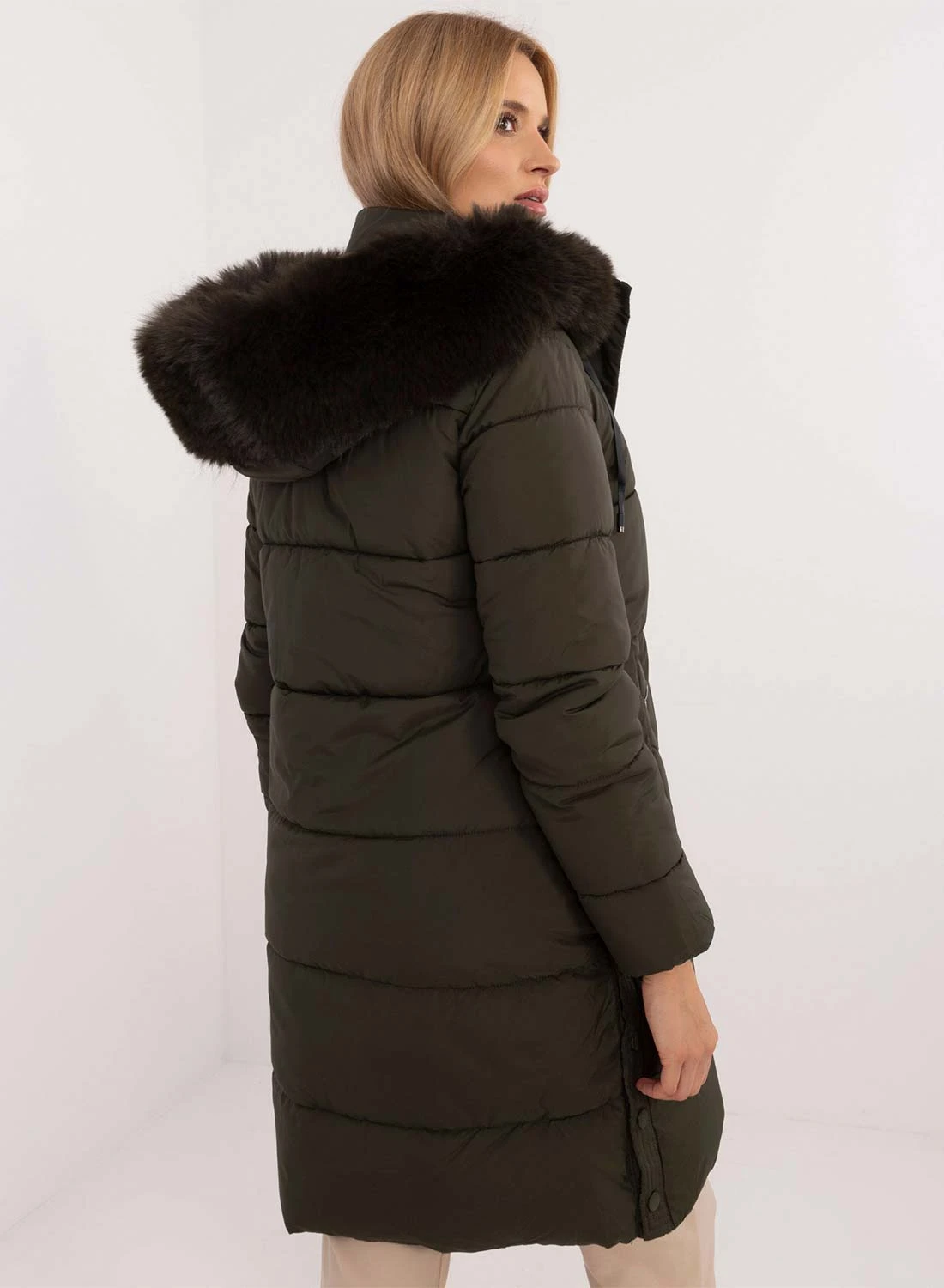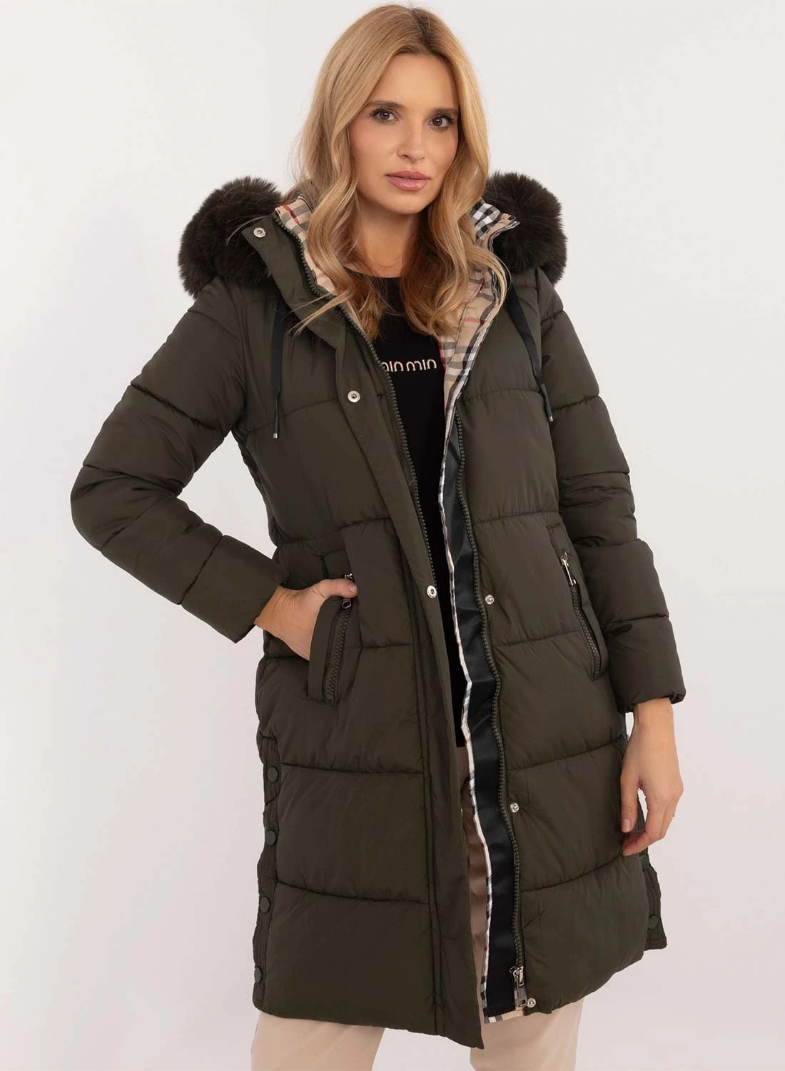 Giacca Verde Lunga Imbottita Con Cappuccio In Ecopelliccia