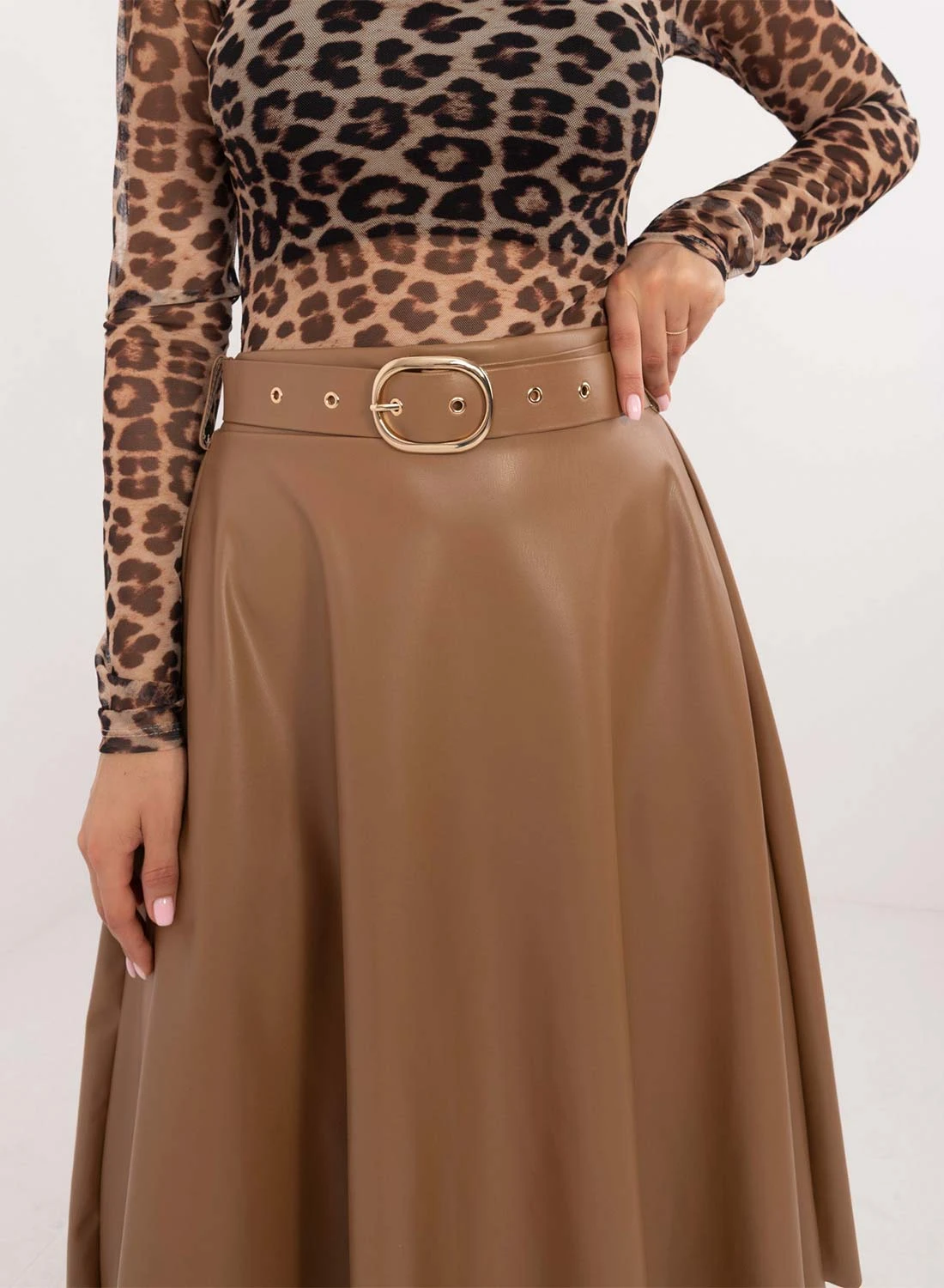 Gonna Longuette Fango In Finta Pelle Con Cintura
