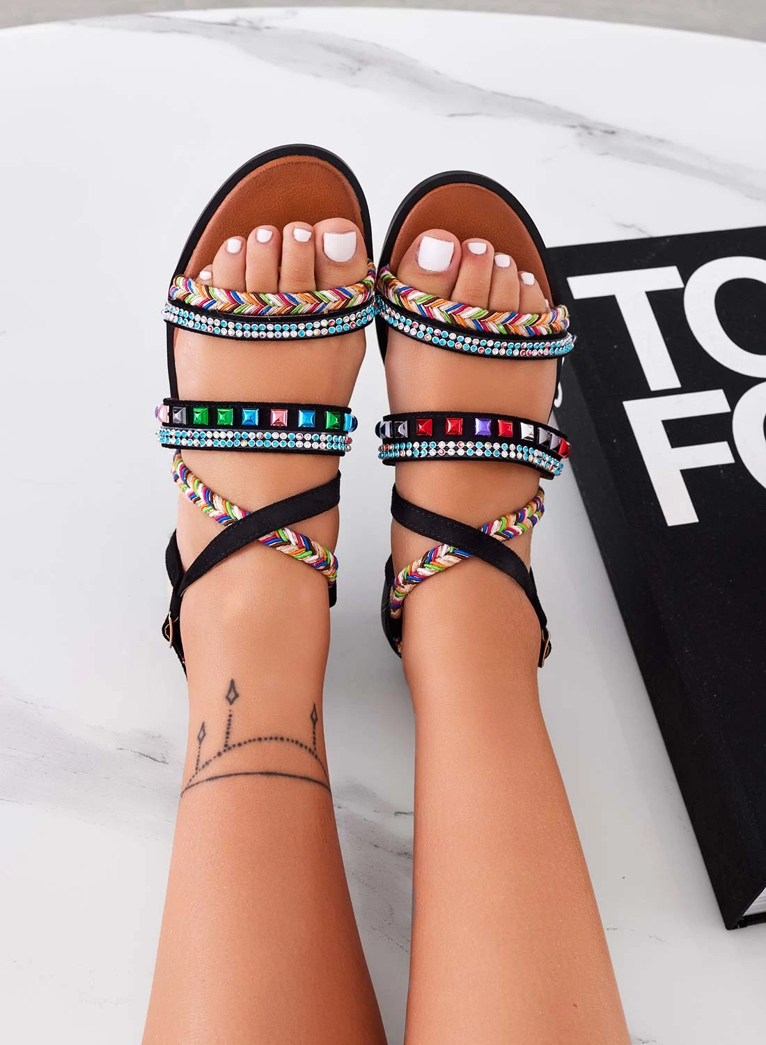 Recensisci per primo “HENRY – Sandali Neri Bassi Con Strass E Borchie Multicolor” Annulla risposta
