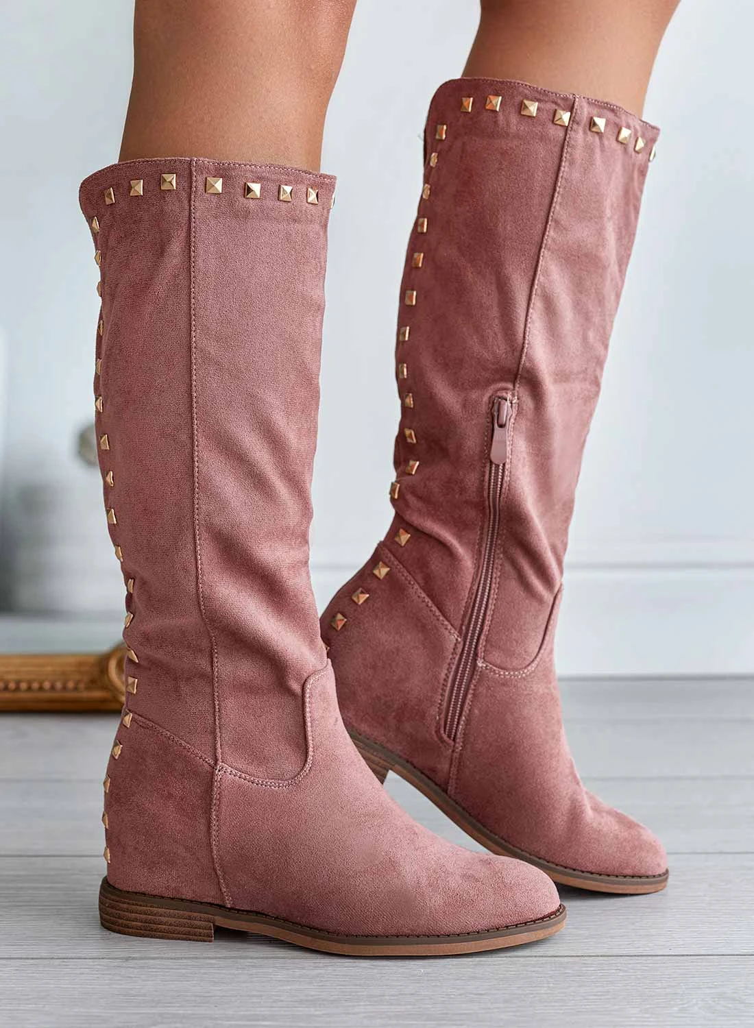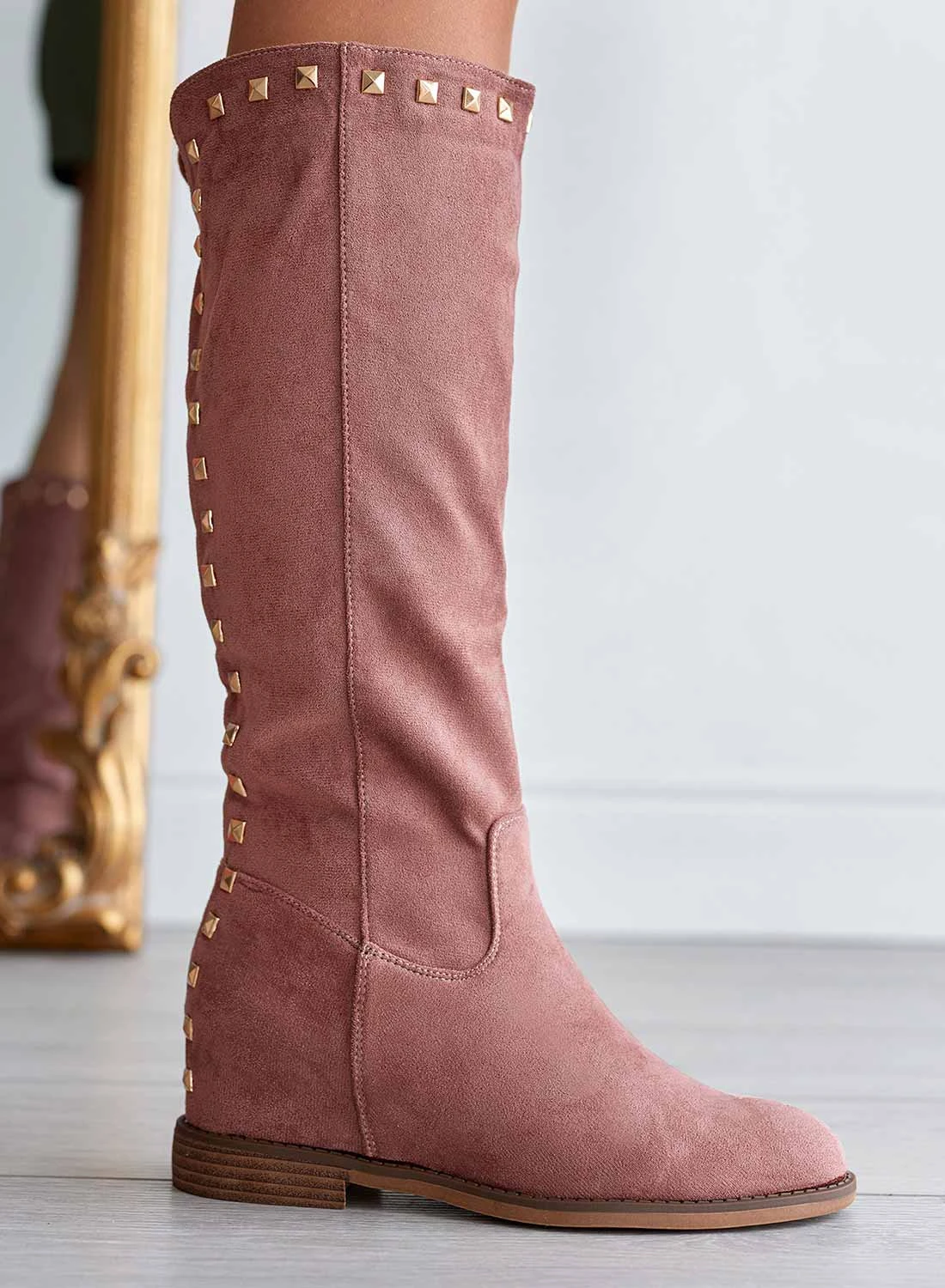 JANINE – Stivali Alexoo Scamosciati Rosa Con Zeppa Interna E Borchie
