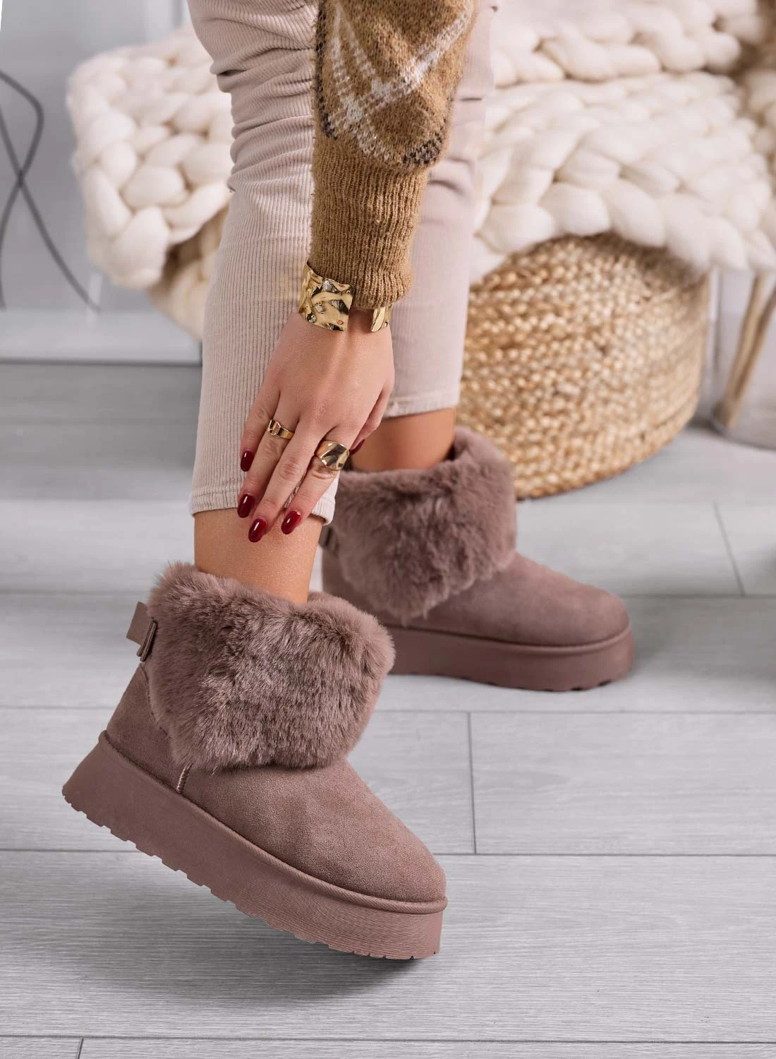 - Materiale: Tomaia in tessuto scamosciato Fodera e Plantare in ecopelliccia Suola gomma