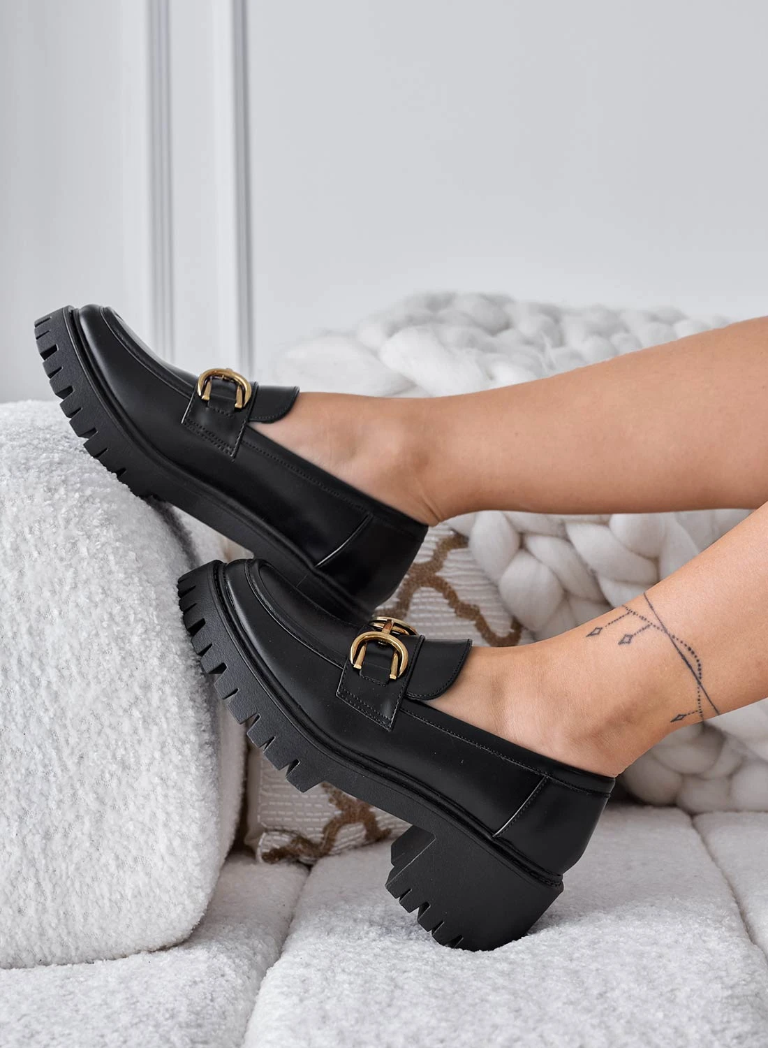 LIFE – Mocassini Platform Neri Con Fibbia Oro
