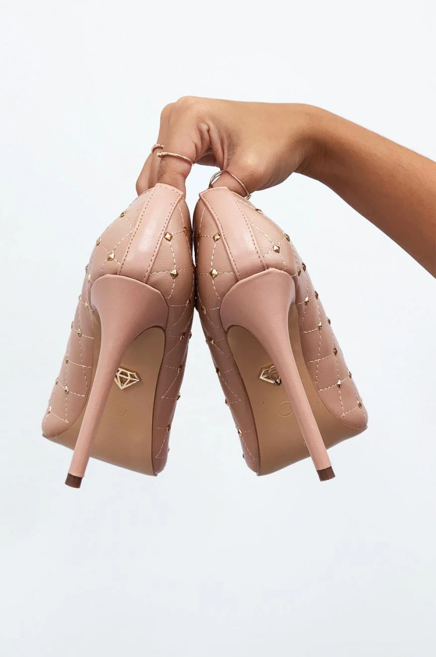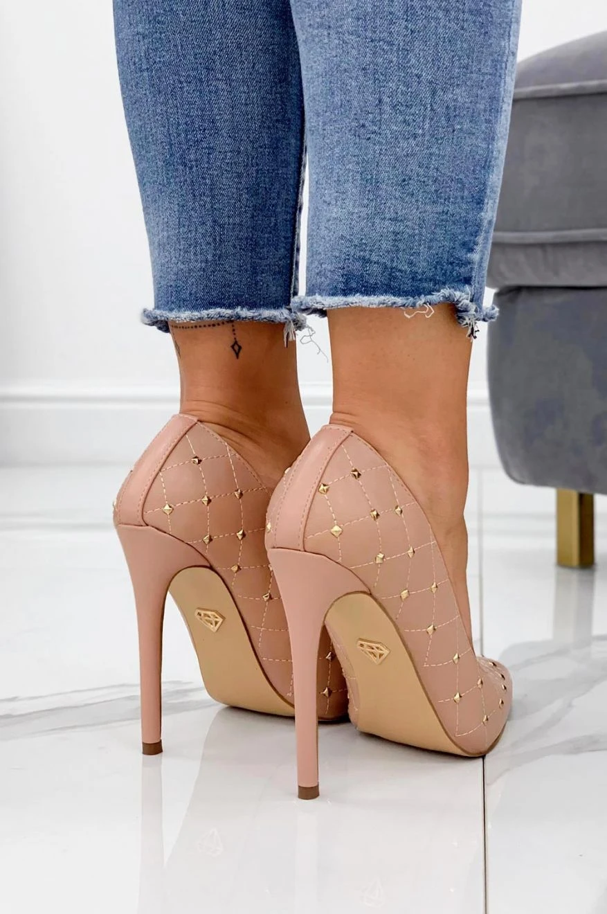 LOVELY – Decolletè Rosa Trapuntate Con Borchie Oro