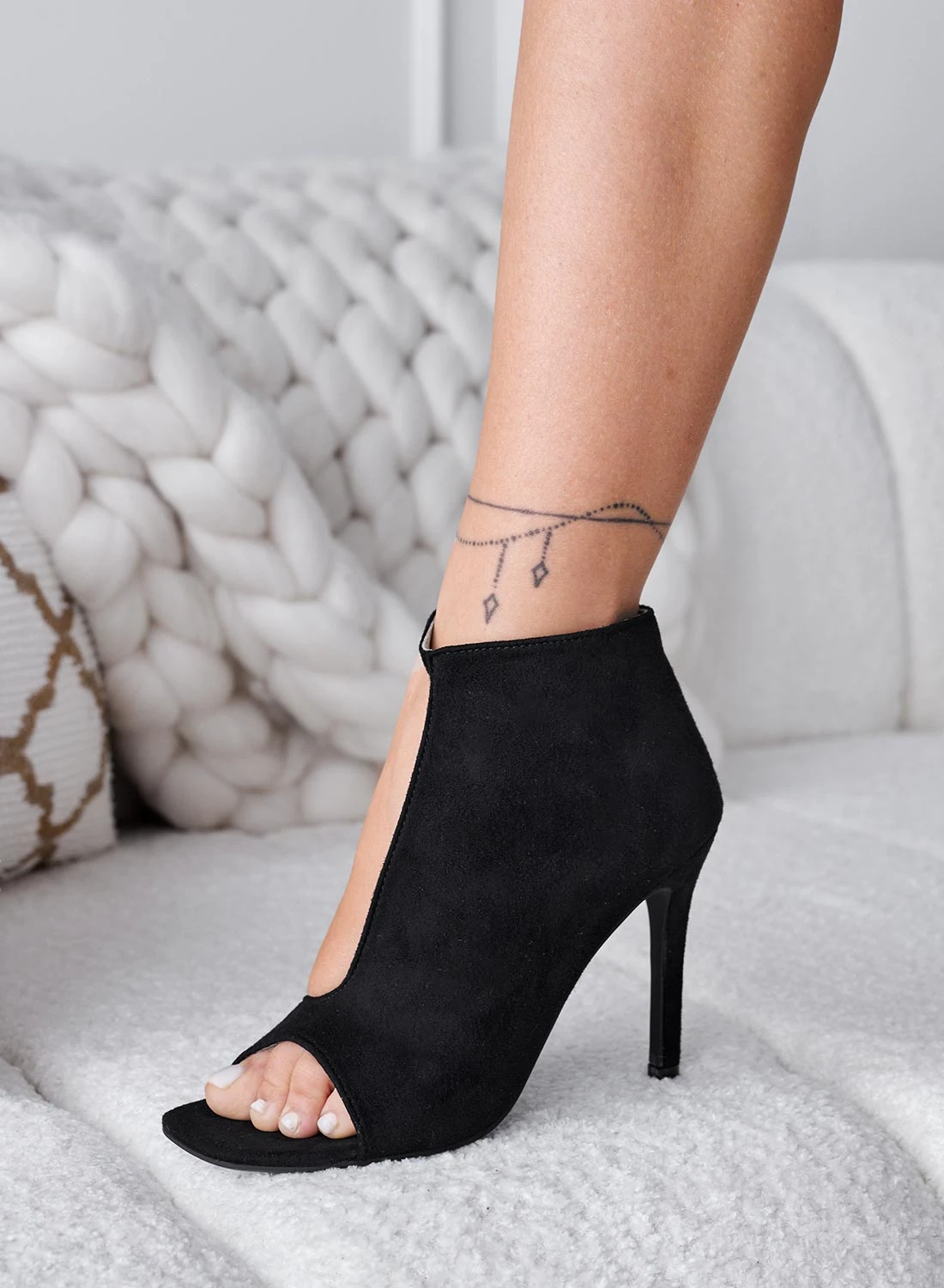 NEDAN – Sandali Tronchetti Neri Scamosciati Con Scollo Interno E Tacco