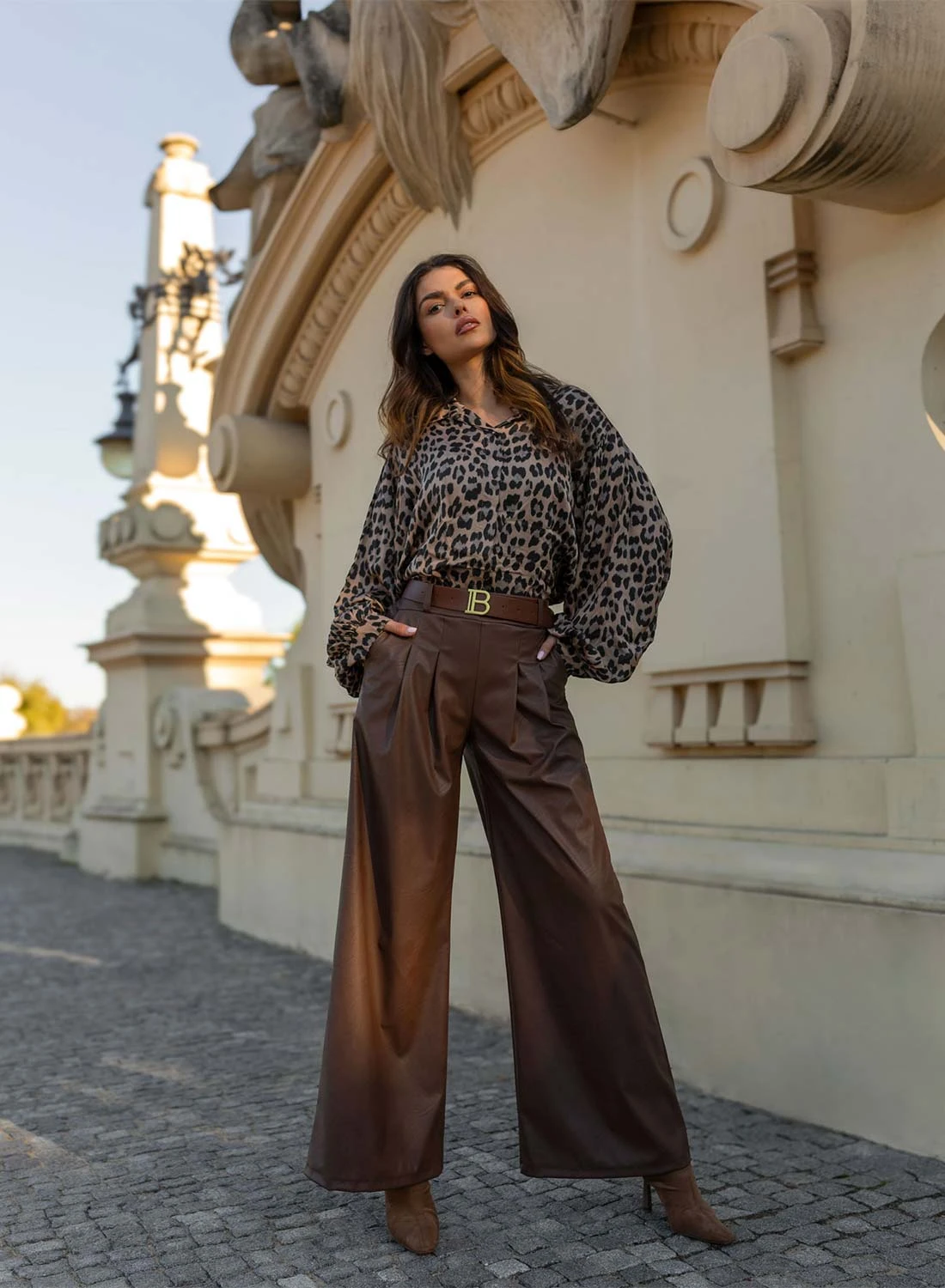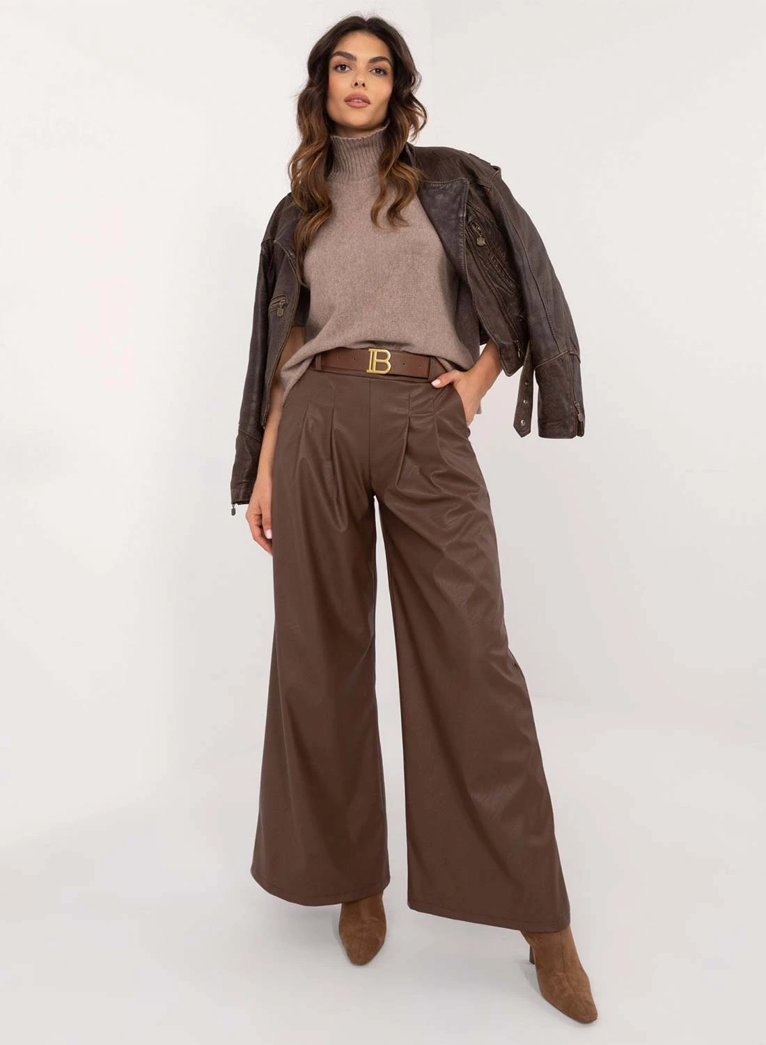 Pantalone Marrone In Finta Pelle A Zampa