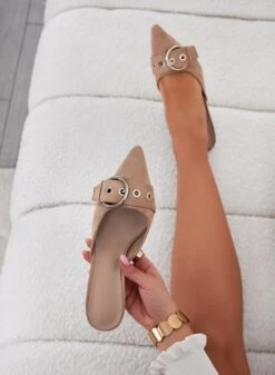 FABIOLA – Scarpe Ballerine Beige A Punta Con Pannelli A Contrasto