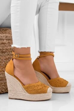 Espadrilles Gialle Con Zeppa In Corda E Ricamo