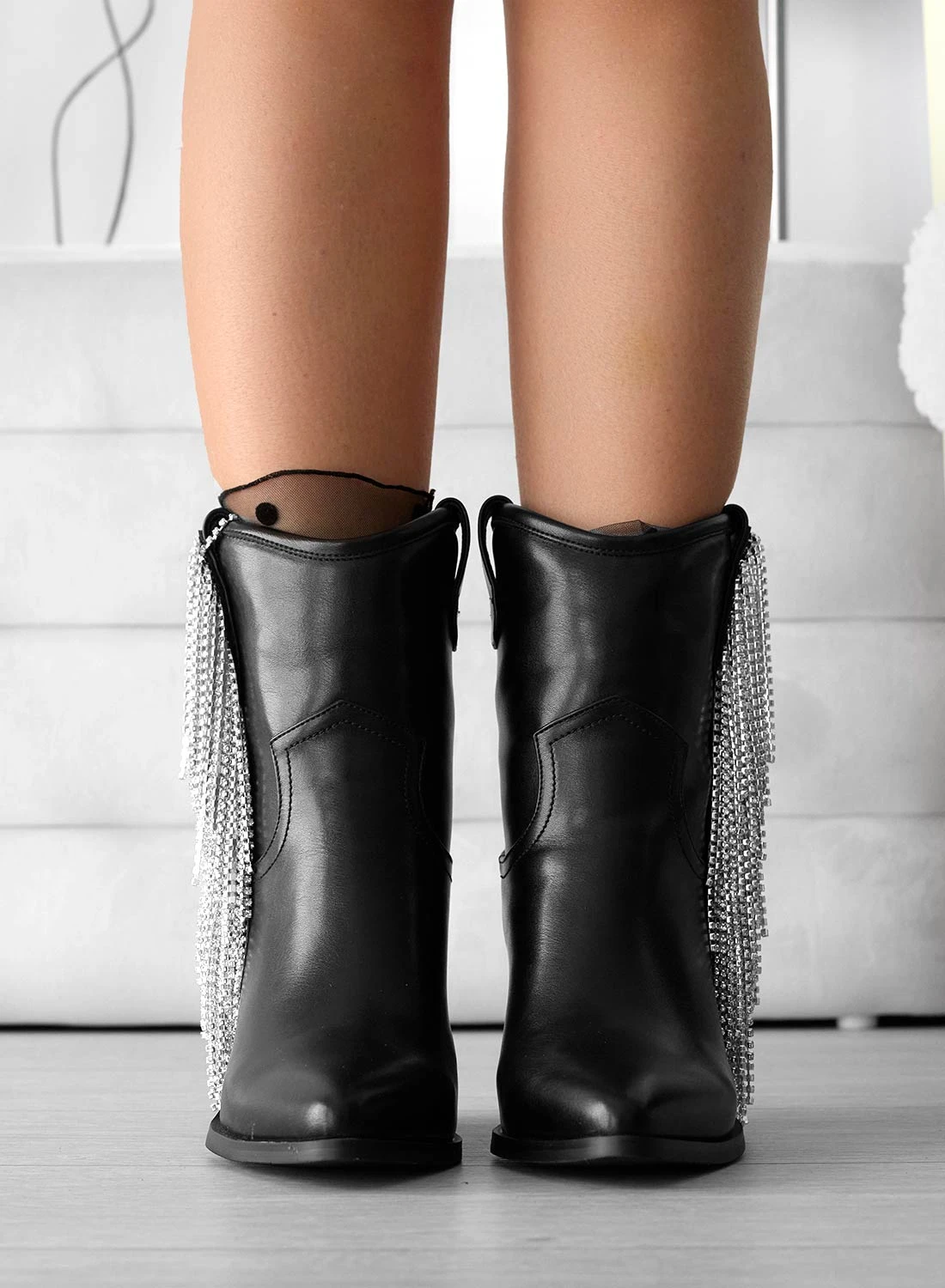 ROSE – Stivaletti Alexoo Neri Camperos Con Frange Gioiello