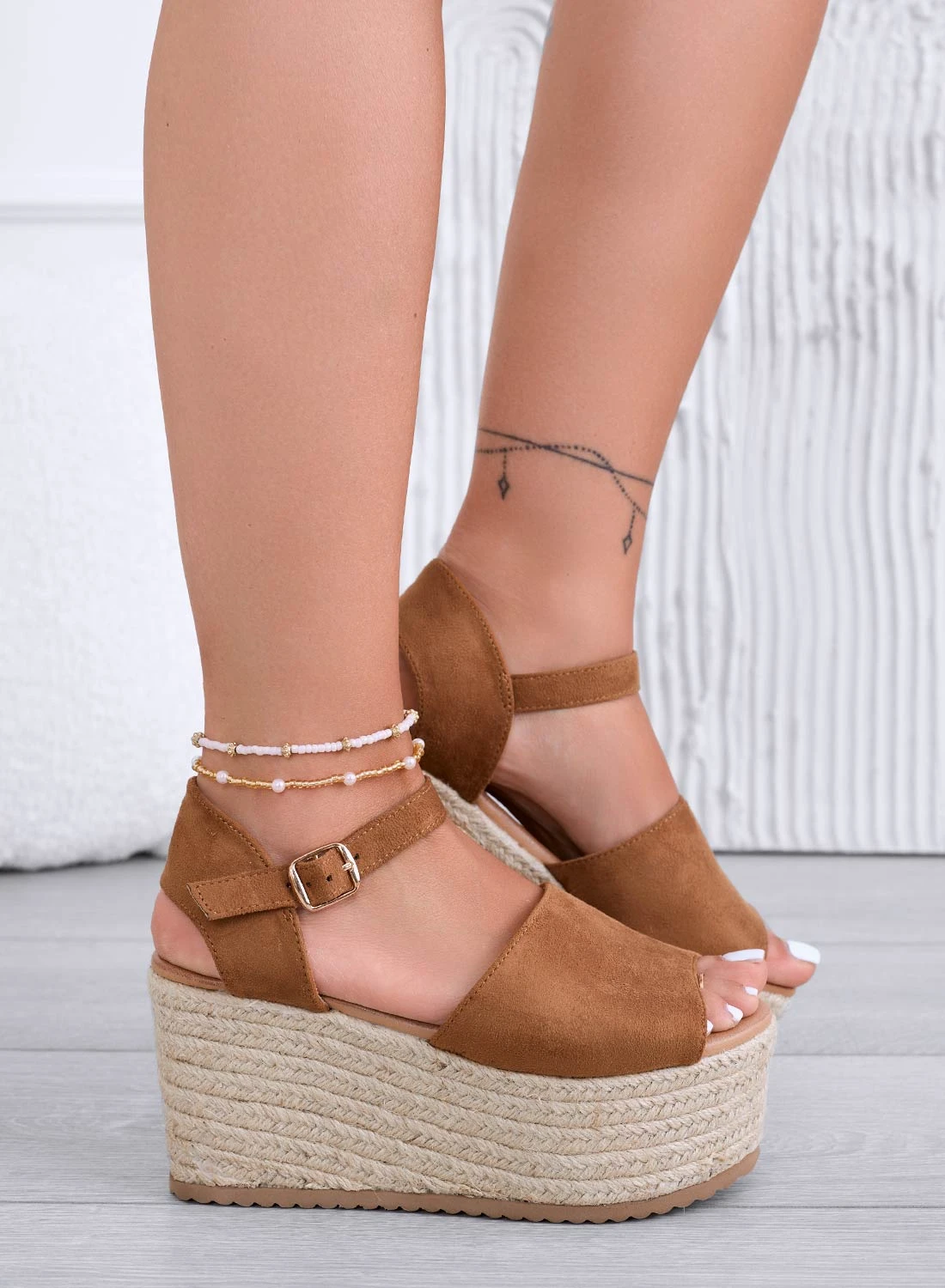 ROXIE – Sandali Espadrillas Camel Scamosciate Con Zeppa
