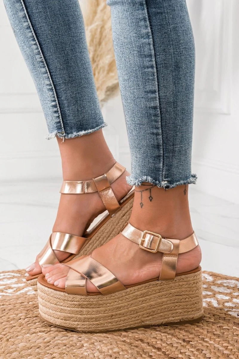 Sandali Espadrillas Oro Rosa Con Zeppa In Corda