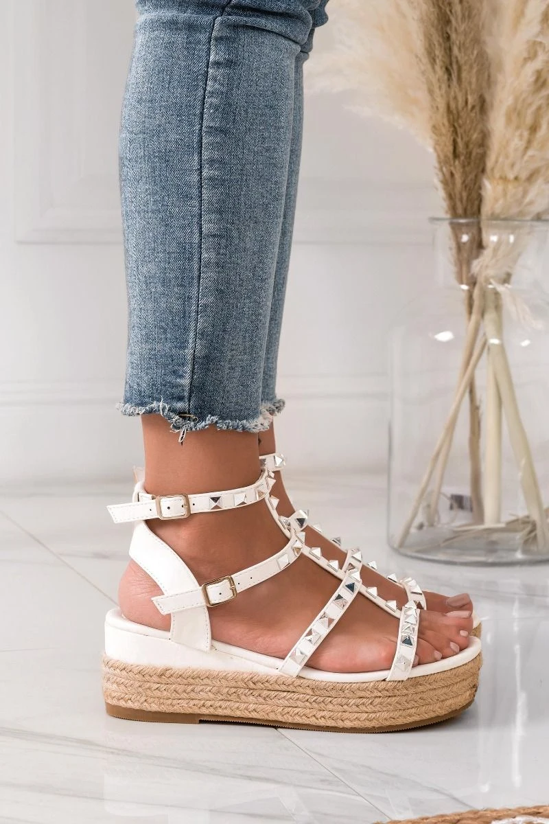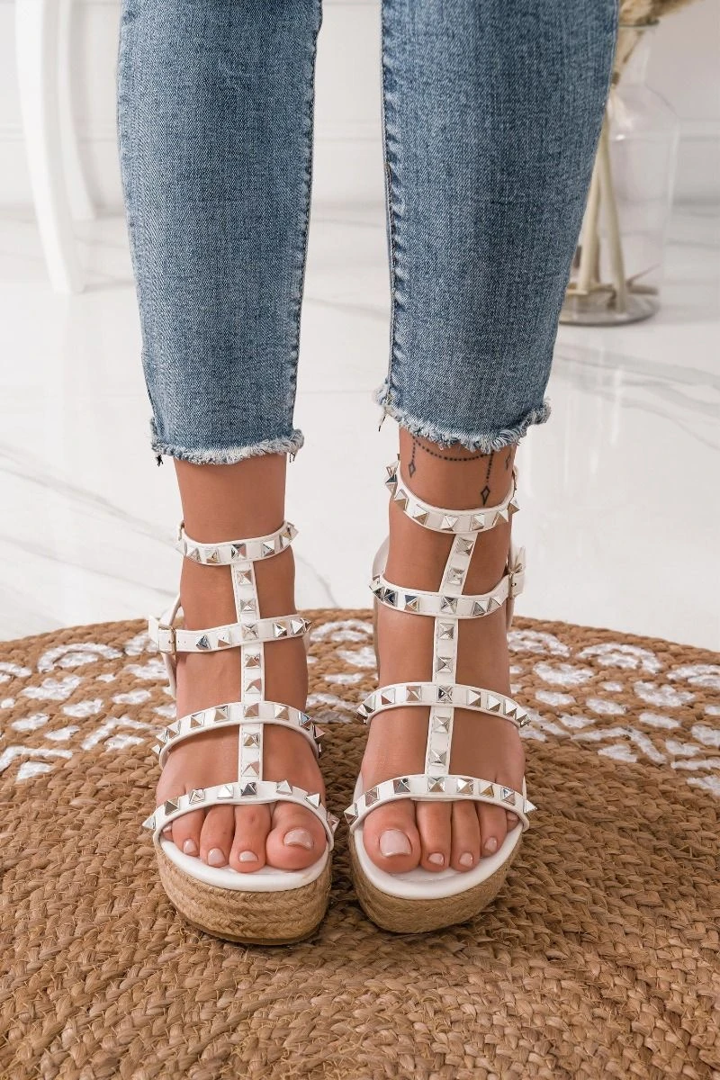 Sandali Espadrilles Con Borchie Argento Bianchi