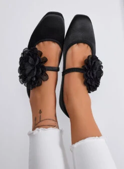 ATHENA – Ballerine Nere Eleganti In Raso Con Fiore Decorativo