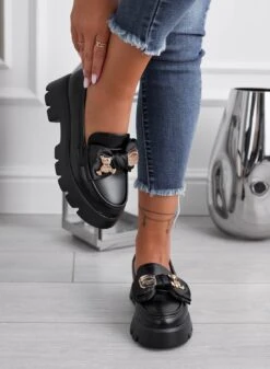 SIRIA – Mocassini Platform Neri Con Inserto Animalier Leopardato