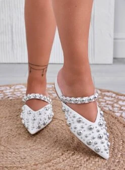 WILDA – Ballerine A Sabot Bianche A Punta Con Borchie A Sfera