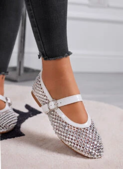 LAVINIA – Ballerine Bianche Con Strass E Cinturino Regolabile