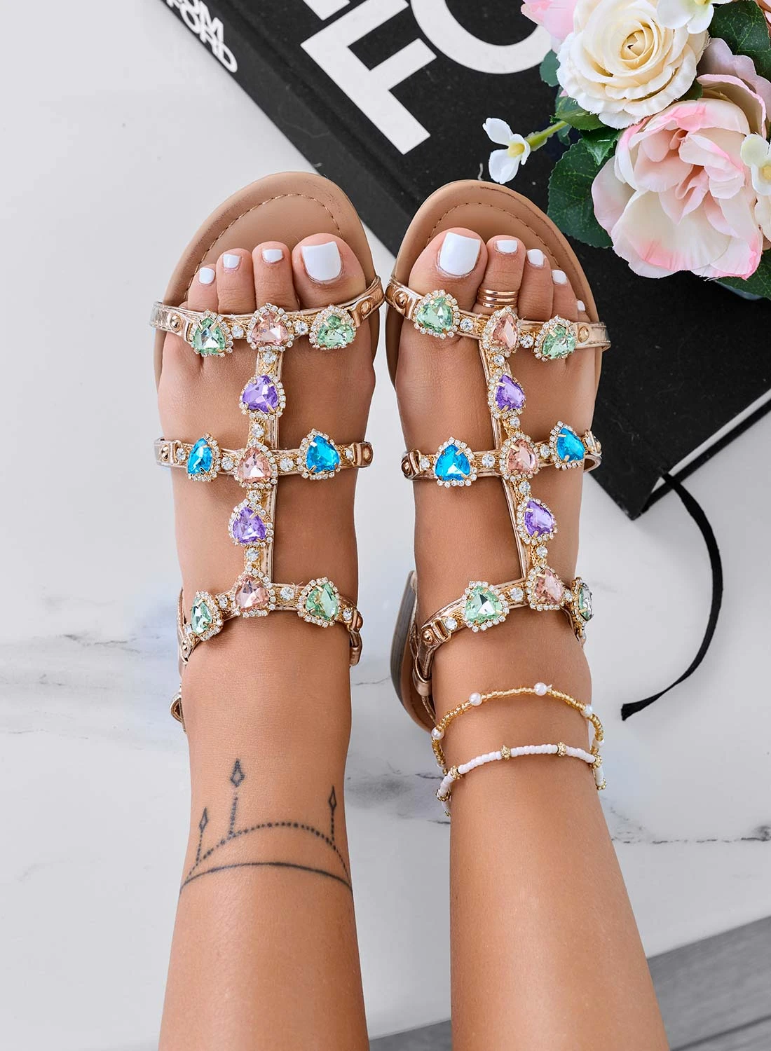 SHANA – Sandali Bassi Champagnegioiello Con Pietre Multicolor