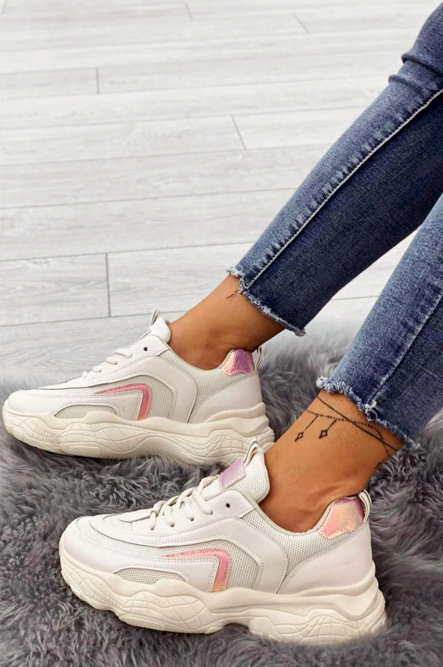 Sneakers Beige Con Lacci E Inserti Metallizzati